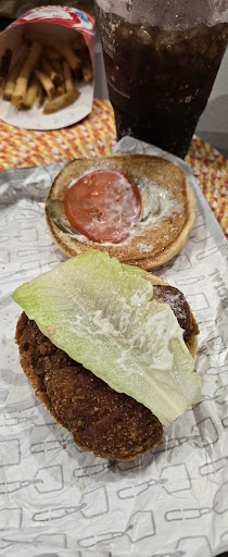 This store has gone down. Everytime I order a chicken sandwich, the meat is burnt and dry. EVERY sandwich has ONE piece of lettuce and ONE piece of aged tomato. EVERYTIME! The sandwiches are so bad, they need to fix it. I'm talking about hamburgers as well. I can see this store closing in 6 months with this poor quality. My last time, on a Sunday, I waited for 15 minutes at the order box only to be told, "your order is done, you should come inside and pick it up, if you want it quicker." I ordered in the app. The audio on the box is broken as well. This place used to be good, as my original review shows. Not any longer.