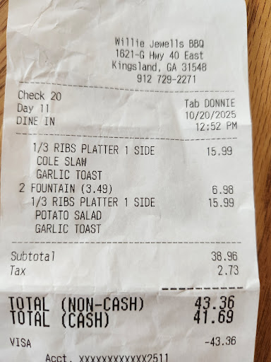 Read moreWe thought when they got new owners everything would get better. We just left this horrible place and will never return we don't care how many owners it gets. My husband and I got so sick while there. My husband was out of it completely and the food ran right through me while we were there and through my husband when we got home. We believe it was their stringbeans because we both had stringbeans and said these stringbeans has a lot of salt and pepper in them. Told the waitress and she said that they have one lady that's all she cooks with is salt and pepper and they tasted old cause they had no crunchto them. Well let me tell you this all of you that work in these places everybody can't have salt and if you are gonna cook with those ingredients you need to tell your customers. This will never happen ever again because we will never come back EVER. People do not look forward to a meal out to get sick from anybodys food. Shame on you Willie Jewels you dropped the ball. Not impress at all. This is the last time that we will ever step foot through those doors or any of Willie Jewels...