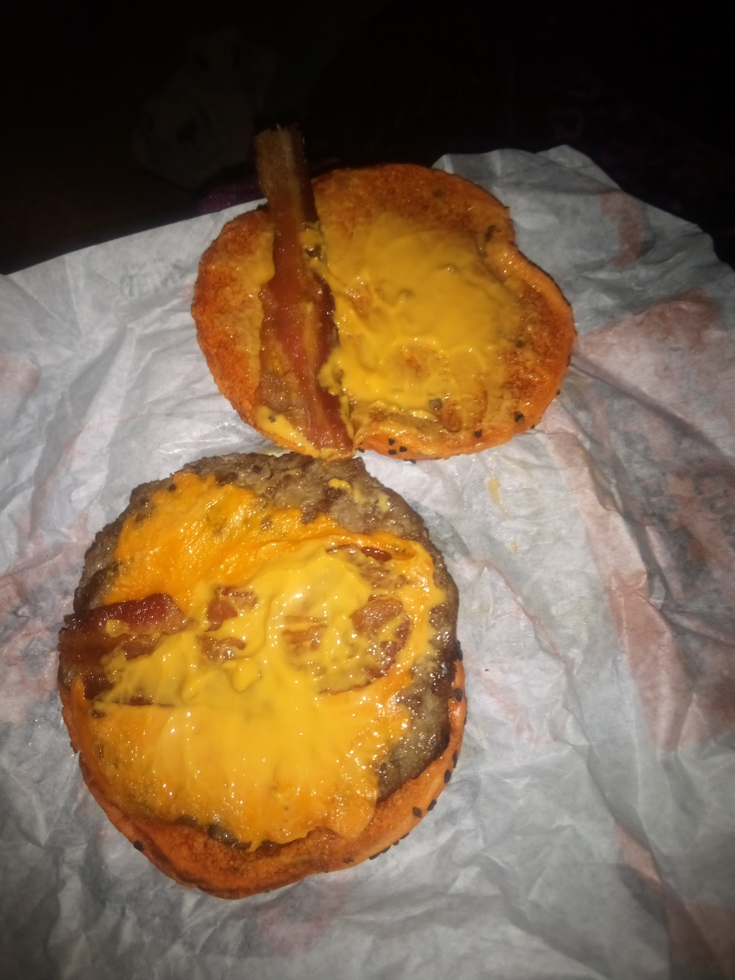 WHAT WE GOT: 1 spicy chi'king, 1 order of cold fries that probably sat under a heat lamp the entire time we waited. 1 regular burnt chicken sandwich, and 1 double cheeseburger. (NO BACON) I quit going to McDonald's because of this exact same thing and haven't been in over 4 years, so I guess it's time to go...
