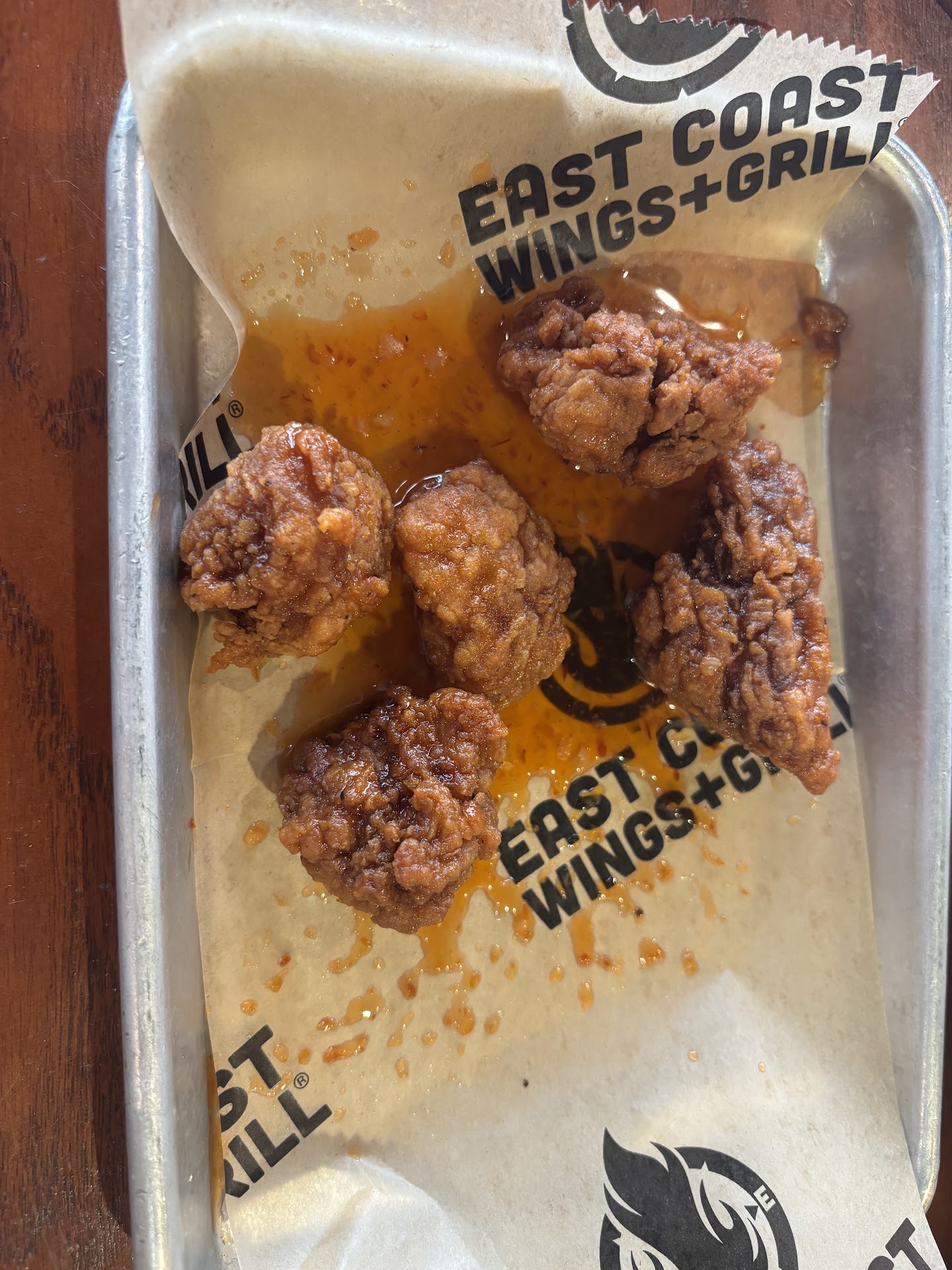 Read moreFinally got in tonight to try this place with my husband and grandaughter. Right from the start I felt it wasn't going to be a good experience and I was correct! The hostess acted like we were bothering her to even be there. No smile. Nothing. Sat us at a table that was dirty and sticky. Looking around none of the other tables looked much better. Place could use a good cleaning. Our waitress was not much better. No personality. No smile. She had no knowledge about any of the wing sauces..which struck us as odd seeing it is a wing place. I went with the 10 wings.with Polynesian sauce. I had high hopes for this place. The wings came cold. The skin On them was hard..covered with a thick sticky tasteless sauce. :( Husband's burger with Mac&cheese in it fell apart after the first bite. Was a mess. He had to finish the sloppy mess with a fork. The tatter totts were cold and boring. Grandaughter got a tiny dish of Mac&cheese with an applesauce and a drink for almost $7. The Mac&Cheese tasted like it was straight out of a can!! If that's possible!! Definitely was not home made. Even the soda was flat. I always follow up any negative review i write with at least one positive. I can not think...