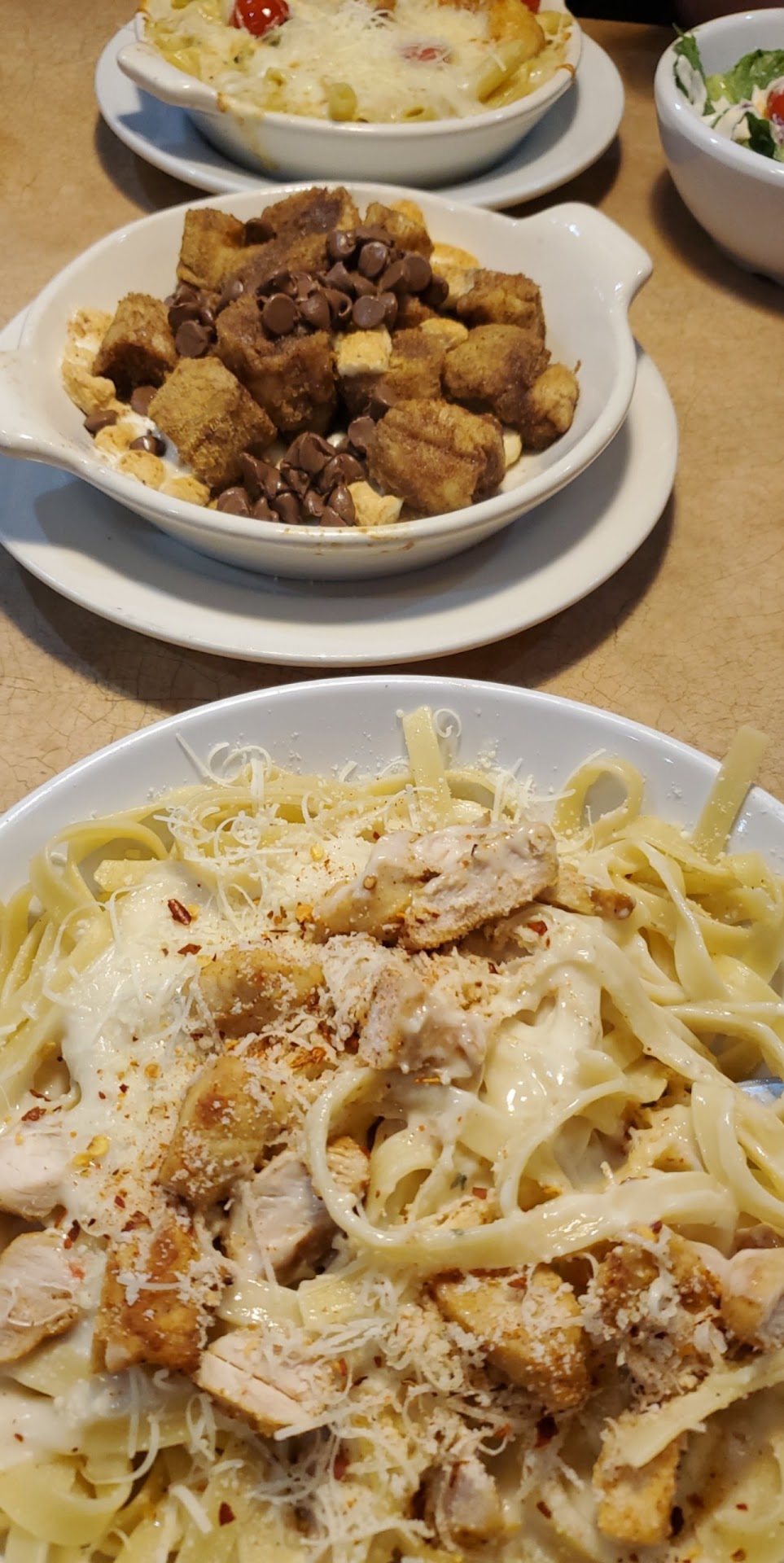 Read moreThe employees are kind, helpful, and patient. The food is Italian fare with somewhat limited variety: they have a few types of pasta, a few types of sauce, a few sandwiches, etc. It all tastes simple but good. They're bread sticks are soft, warm, and flavored with ample garlic salt and butter. They only thing I was somewhat disappointed in was their salad. It was just iceberg lettuce, processed cheese and three grape tomatoes. If that's your jam, well nothing is wrong with it. But, I felt like it would have benefited from one or two other things (maybe pepporcinis or croutons?). They do have bigger dinner salads, but their more caloric than most of the pasta dishes. They did away with one less-caloric dinner salad I used to like. I guess, over all, this restaurant has a lot of potential and does many things well. It just isn't serving the type of food I normally go for. If comfort Italian food is your type of food, I'd...