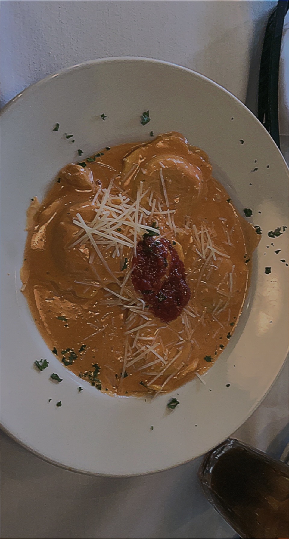 Now the food… My husband and I both enjoy seafood, so we decided it would be a good idea. I got my salad and my husband got his soup, and those were fine— in fact they were the only good thing we had there. (Despite the soup obviously being microwaved; obvious due to the cold inside and hot outside.) I ordered the lobster ravioli and my husband got the Salmon. It was beautiful presentation wise, but it was disgusting. The salmon was gross and super watery, and the ravioli tasted like nothing; except for the faint taste of fishy water. It was so bad I thought I was gonna get food poisoning because I proceeded to have stomach pains and intense nausea afterward.