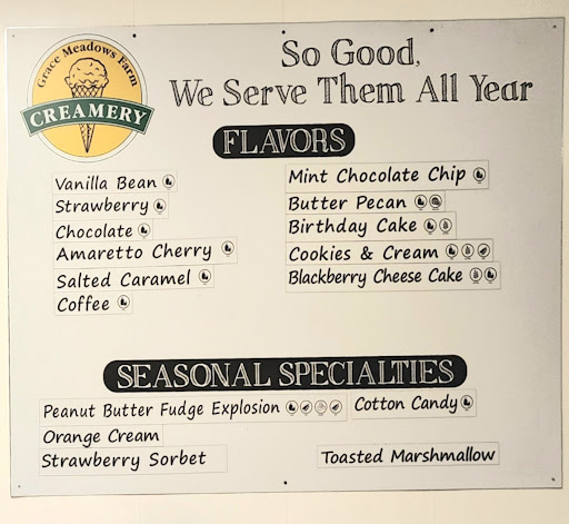 Read moreWe visited Grace Meadows Creamery yesterday and it was lovely. Friendly staff greeted us as we walked in the door and kindly directed us to the area to place our order. They let us know we could try samples of any flavor. The sample sticks are wood, not plastic, which is always good to see.