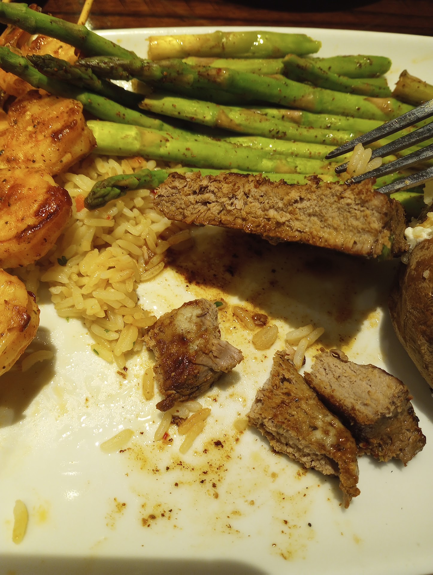 Ā Ā Ā Read moreSo me and my fiancee love Long horns food & as you can see in the pic I added when we go we always get the same thing the Rib eye steak, house salad, and brussel sprouts and I always get another order of brussel sprouts because they're just the best and the food is always amazing but this past Friday night Feb 18th we went to Long horn to sit down and eat and I wanted to try something new so instead of my usual order I ordered the 6oz Renegade sirloin with 6ct redrock grilled shrimp, & upgraded my house salad to the strawberry salad š„(which I didn't know was much bigger just thought it had fruits and nuts added) and of course I ordered brussel sprouts well luckily I didn't order a second order of sprouts like I usual do because I don't know if it was just a new cook they had cooking that night or if I just don't like the way they cook their shrimp idk but the shrimp tasted like it had no seasoning on it at all so it tasted so bland and then the bed of rice tasted so plain and bland also and I love rice even unseasoned white rice and then my most favorite part that I always look forward to are the brussel sprouts and they came out so bone dry that they didn't even taste good at all.. They usually come out with so much extra sauce dripping off of them that when I order another order of them I always have extra sauce in the bottom of the bowl to throw on top of my extra ones but nope not this time they were bone dry and I seen in the reviews that someone else has commented on the same problem of the sprouts being bone dry also.. Now the steak came out fine that and my salad was the only thing I ended up eating and so didn't my fiance.. If we come back again we will most def just order our usual and cross our fingers that it comes out perfect like before because like I said usually their food is worth the money but this time it was awful so hopefully this was just a one time thing and it doesn't happen again because we don't want to waste money eating here if it's not...