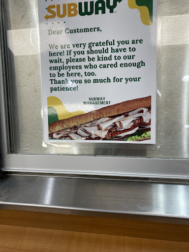 Read moreNow I should mention before I get started I very rarely ever go to Subway for any reason whatsoever. I came here because I needed a quick snack to perk back up my energy levels. I was only here for one thing, a $2 footlong churro. This churro was $2.19 total. I take one bite of this thing and it says hard as a rock. Naturally I try to keep going because I paid money for this food and wasted food is not good. This churro was so hard that I couldn't even finish it or even get anywhere close to finishing it. Makes me wonder if the $2.19 I paid comes with new teeth because you're going to need it if you attempt to eat this. I don't even know how you managed to make this churro this hard. Needless to say I am not going to be getting that if I shop at this Subway ever again.