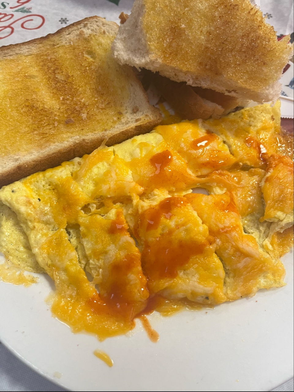 The omelette was cooked just right and not overly done. Sometimes, places will cook an omelette too much and dry out the eggs or make them crispy. The cheese was plentiful and nicely melted on the omelette. The home fries were not greasy and the toast was so buttery, warm and thick. I loved the toast!