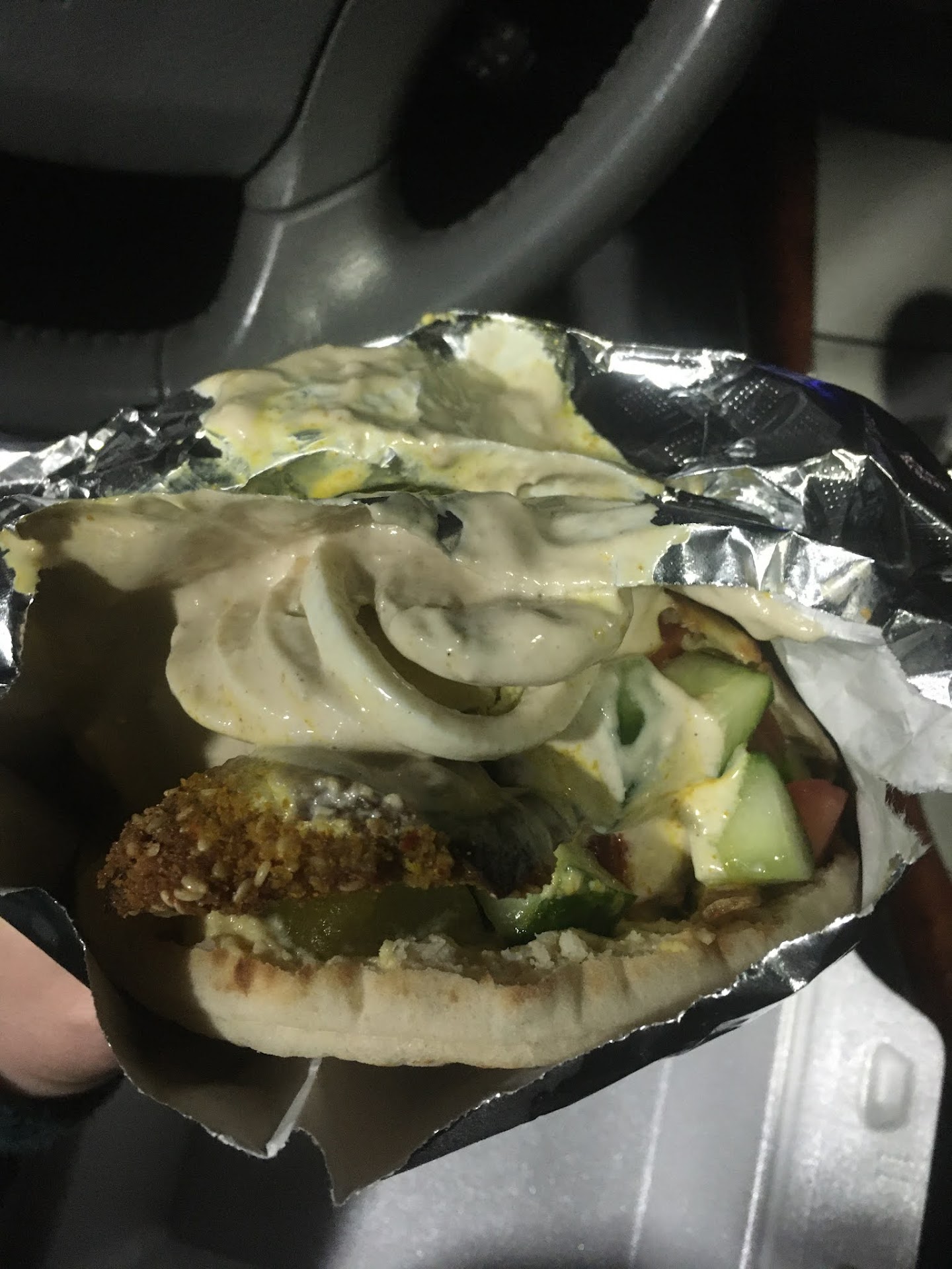 Read moreThe Tofu Shawarma is the most amazing dish! I’ve had it quite a few times & though I’ve tried the falafel (which is amazing btw) I just keep going back to my true love. Not a fan of the cold French fries that sometimes are hidden in there & it depends on who does the prep if the cucumbers are finely chopped or not. The way that pickle hits every time when you get to the bottom is such a happy surprise. Don’t even get me started on that marinated eggplant!! I know it’s coming eventually but I pretend I don’t know about it. You can tell they’re cooking with LOVE for sure. Going out for food as a vegan is tough out here as a New York native who was used to options at every turn..but I know as long as it’s not on the Sabbath I can get fresh, quality food nearby from the kindest, sweetest people. Shout out to the boss man who even as he’s out running errands will still always pick up that phone and...