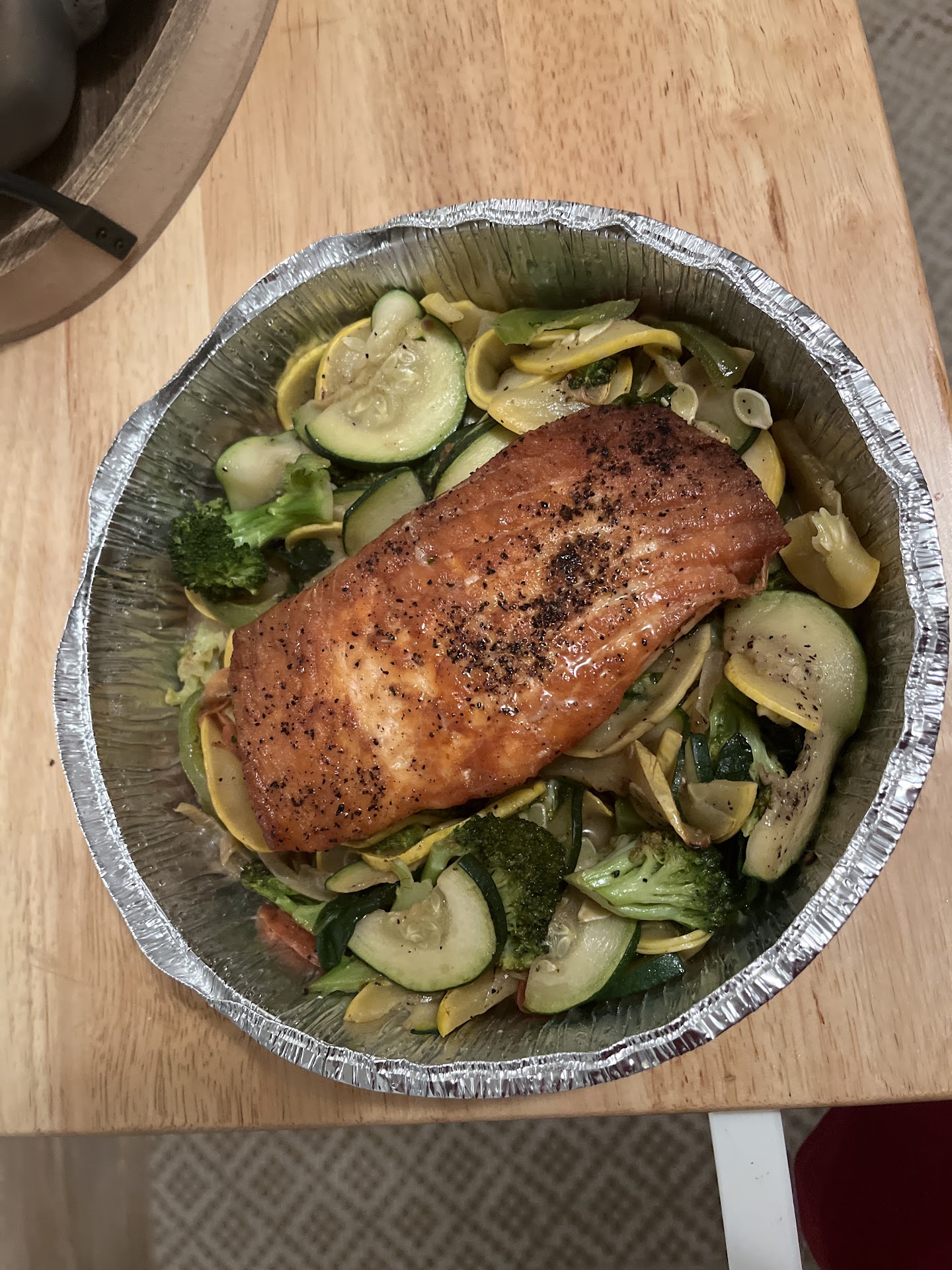 The chicken was cooked perfectly. The vegetables were beautifully prepared in a light, delicious sauce served on a bed of pasta. The serving size was twice what a normal person could eat!