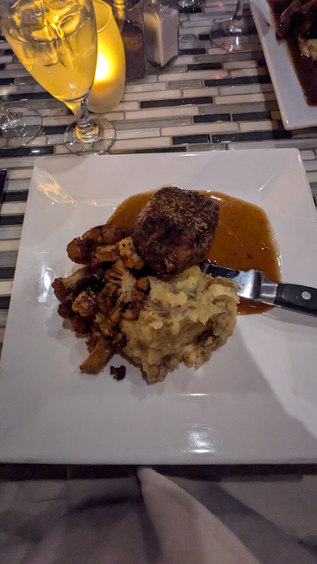 Ā Ā Ā Read moreNice atmosphere. Good food and decent prices, I think, for the food served. The brussel sprouts were amazing and there are lots of them in the appetizer so plan to share with the whole table. Hubby and I had the short rib and it was excellent. Others at the table had the stuffed pork chop and lamb chops and both were also good. I took off stars for the atmosphere only because the table lighting was way, way too dark. Some tables had chandeliers over them while others did not. Aside from this, all agreed the restaurant was better than most at this price range and we...