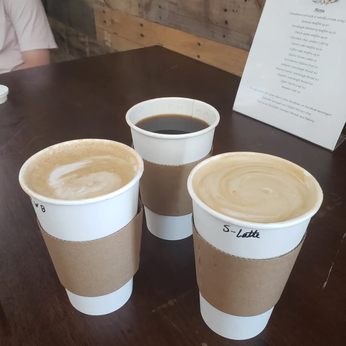 My wife and I went with a couple of their house specialty offerings. She picked a Red, White, and Blueberry Latte with housemade blueberry syrup. The blueberry was more subtle than others we've tried, leaving a more simplified oatmilk latte experience. I went with their Summer Thyme latte with their honey/vanilla/thyme syrup. It was very tasty with the thyme adding a nice herbal kick. Cole opted for an Americano (pour overs are not available yet). The drink had a velvety profile, almost with a caramel/chocolate taste.