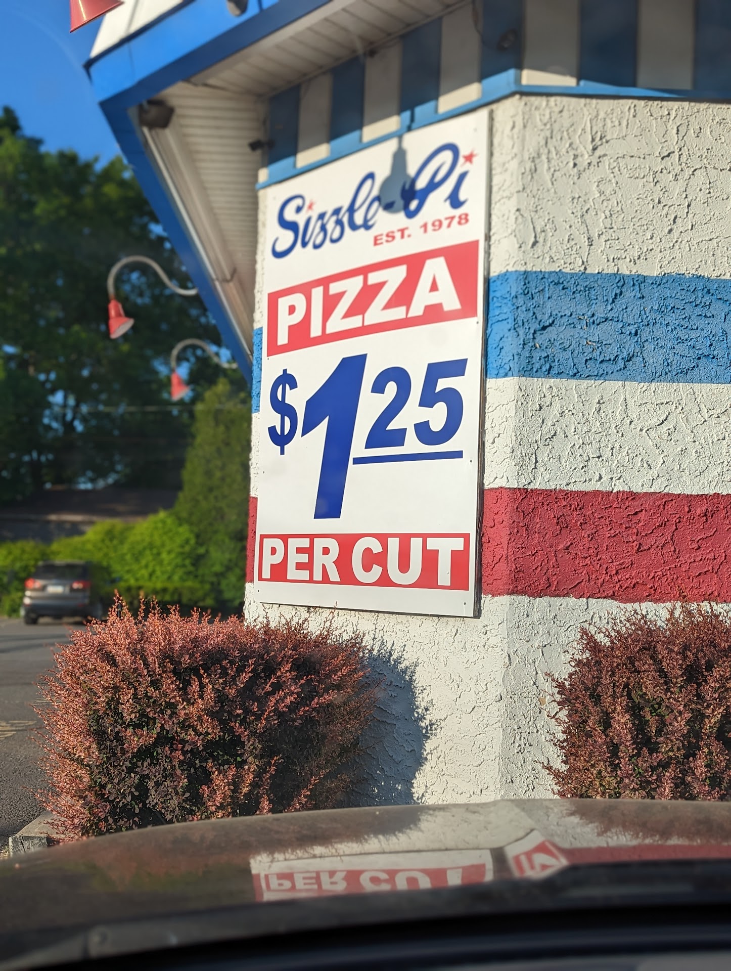 Sizzle Pi Pizza is a small pizza joint that's been around for a few decades. It hosts a New York theme, with many pictures of Manhattan and New York City throughout different eras.