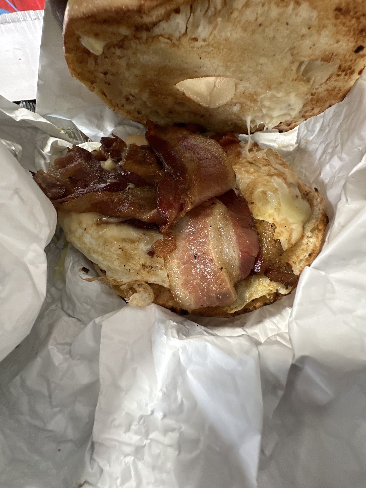 As one would imagine, the sandwich packed a lot of sodium; however, The Atrium wasn't sparing with the meat. The hand-held was very filling, and I struggled to finish it. It was just as well, as the breakfast potatoes were not entirely pleasing. Each morsel of potato was the same size, which meant that they weren't freshly made but came frozen from a bag. They were also sodium-laden and overdone, as they tasted burnt.