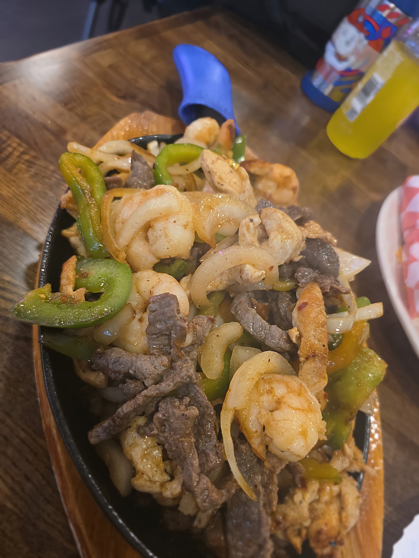 Food was made to order and came out reasonably fast. Was hot, respectable portions and quite yummy! I had their 3 cheese pizza, my buddy got a stromboli (?), The ladies got a fajita platter & fish tacos. We all commented on what a pleasant surprise this place is! Can't ask for more than really good food, generous portions and all at a great value cost wise. Our bill was @ $85 for the 4 of us (as I recall).