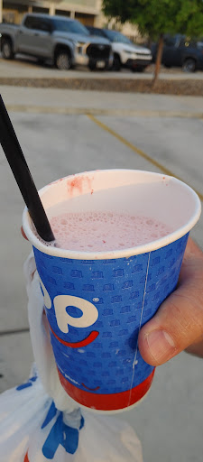 So I was tired of all the soft serve milkshakes in town and I looked up which restaurants still make milkshakes with real ice cream and as far as in Kingsville only IHOP does. So I went on their website to order some food and a milkshake to go their milkshake price was I believe $9.89 and I was in disbelief but I know everything costs so much more lately so I went ahead and ordered it. Mostly because I had a $5 credit with GrubHub. I also ordered The three buttermilk pancakes for 9 something dollars. I got there when the order said it would be ready it wasn't. After about 10 minutes the pancakes showed up with the server letting me know that the original person who helped me at the counter was making the milkshake for me as we spoke about another 15 minutes later she shows up with a kids to go cup and hands me the milkshake. Strawberry ice cream melted all on the outside of this now dirty, tiny cup. I'm walking back to the hotel with it and I don't even make it out of their parking lot before I pop the lid and see that out of the cup that's equivalent to a can of Coke there's about an inch of milkshake missing and the whole thing is severely melted. More like an ice cream milk soup not shake.