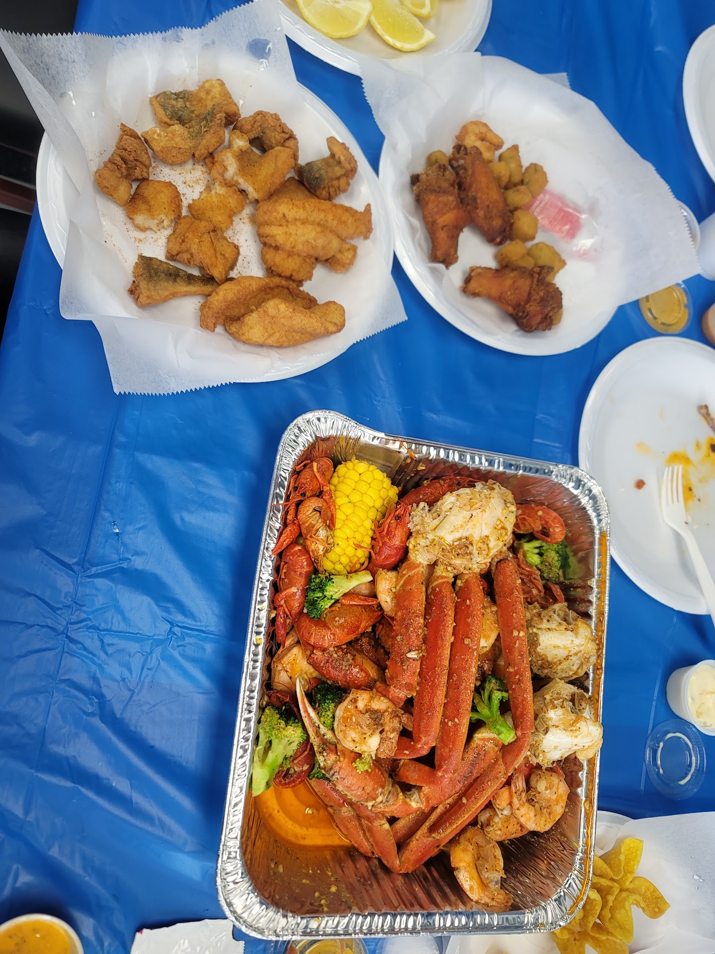 *I ordered a catfish plate with fries and the seafood boil with snow crab, mussels, and shrimp.