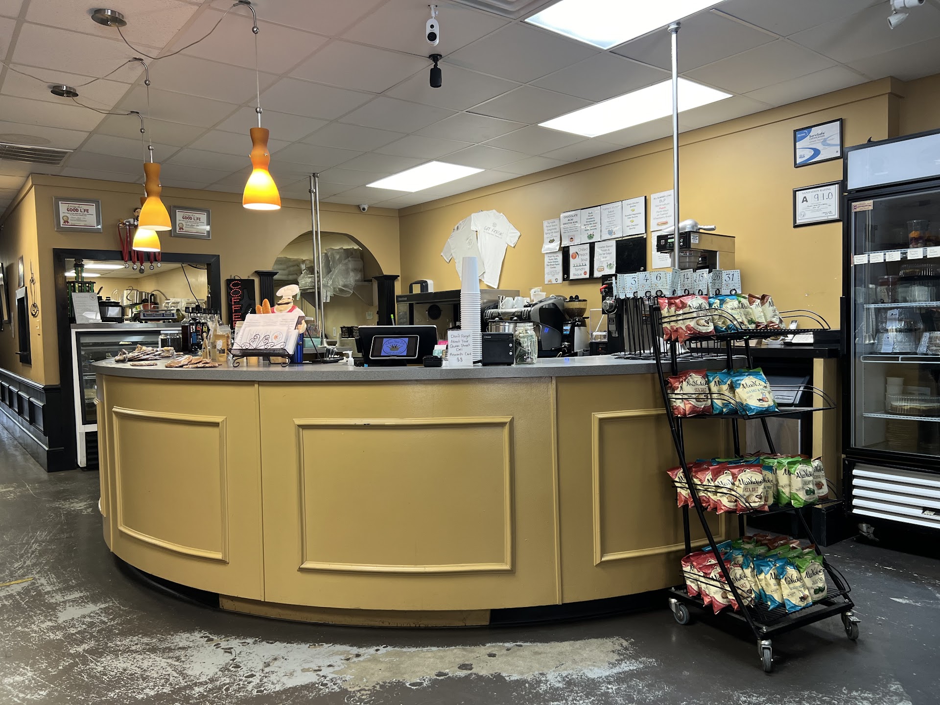 Read moreTraveling through and looking for a quick bite. The deli was fairly busy at 12:15. Seemed to have a lot of locals. Good sign. The food is very good. The coffee was great. The restaurant lacks management. We stood at the counter for 6 or 7 minutes before someone actually said I will be with you in a minute. After we got our sandwiches, a club and Cuban panini, both very good, I decided to order a pound of chicken salad to go. 25 minutes later I canceled the order as they still had not found time to put it in a container. The staff was not smiling and seemed to be in pain while working. Obviously short staffed and overwhelmed but a good manager should have been there to welcome the customers and fill in where needed to keep the atmosphere and employees a little more upbeat...