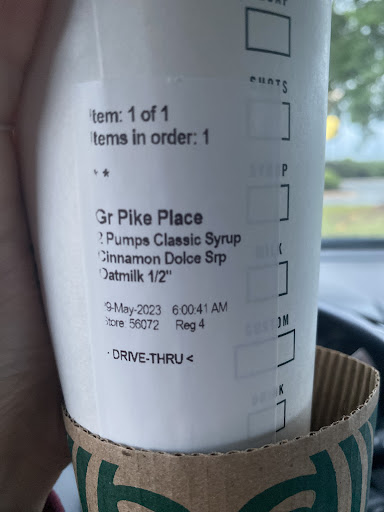 Read moreThis place was the worst Starbucks experience my husband and I have had in a very long time. First their location makes it hard to get in and out of. Because of this the drive thru was so backed up we went inside. Big mistake! We ordered two lattes and waited 40 minutes to get it. Once we got them one of them was made incorrectly. For as much as these drinks cost you think they would be made consistently, so we asked them to correct it. The staff first got an attitude, then made excuses so they wouldn't have to correct the problem. The manager finally came up to the register and spoke with my husband. She said they would remake it but it would take a while since they were backed up. My husband pointed out that we had already been waiting and we should get the corrected drink before a new order was made. We finally got the London Fog Latte, made correctly 10 minutes later. They had left the vanilla out on the first one, which is part of how the drink comes. No special order was made. Then as we tried to leave the parking lot it was so backed up it took another 10 minutes for us to be able to get around the drive thru. An hour stop to get TWO drinks is ridiculous and this staff clearly didn't care about customer service because they did nothing to make the situation better, nor did they apologize and act friendly to any of the customers in the store. In fact, there were several customers besides us expressing how bad the service was. We will never come back to this place. First time to ever stop at this location...