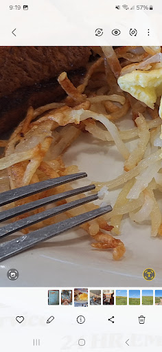 I parked behind the restaurant on the dirt road. There was a woman sitting on the back patio. I asked if I could walk in from there to the restaurant. The response was:"I have no idea! It must be on the front!" She gave me an odd look. The portions are petite. I got there around 2 pm. It was almost empty. I ordered the eggs breakfast, which cost $14. I received 2 eggs, 20 grams of potatoes, and 2 pease of bread. One thing on the menu and another thing served. I am a bit disappointed. Mainly bread 🍞 is what you pay for. The bread itself was burned over tosted and black on the edges. It wasn't fresh. The bread was covered, actually soacked in butter, to hide that it wasn't fresh. It was bad. The so-called hahbrowns were grated potatoes. They were also dry and cold. The total amount was 2 spoons with the air in between. They had no taste at all. This food looked and tasted like someone's leftovers from 2 days ago. Although they commented on cheese ,it was an invisible amount of quantity. I tried 1 scoop of ice cream, which cost $7. They said it's strobery, but it's a lie. It tasted like this cheap Wal-Mart ice cream. Kind stuff. It was overpriced and okay. I wouldn't repeat. The boy server seams didn't understand what it means to be vegetarian. I got a "cup" of tomato juice, served in shot glass for a price of $ 3.50! The entire can of tomato juice costs usually 1.50. Surprisingly disappointed. After I got my $7 of ice cream and a child portion. I asked if I could walk behind the building where my car was. I indicated the back door. Once I walked on the patio, the same not friendly lady who didn't know where the restaurant had an intimate chat with the server lady about their boyfriends. They both pretended that I was invisible. I eat my ice cream. For some reason, the person on the back who seems to be very intimate with the server didn't want me to enter the restaurant. And then I realized that this lady and my server were drinking 🍺 and smoking there! 🚬 Just poor. I don't...