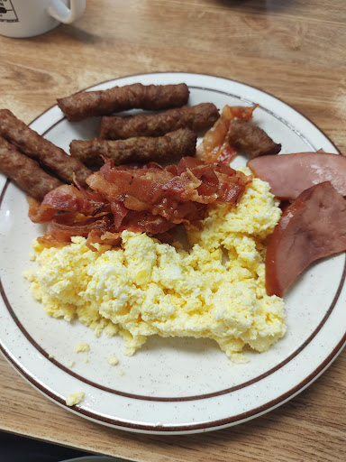 Read moreI enjoy exploring the variety of eateries across Iowa and in Emmetsburg that find is Kirby's Cafe. I was enticed by rumors of a waffle of all waffles. Came in on Sunday and they had a buffet going. Carnivore heaven! Bacon, sausage and ham with scrambled eggs. Big plate. Oh, the waffle, yeah, had to not do 100% carnivore. Waffle was crispy yet soft in the middle. A bit too soft yet still delicious. Real butter ! ! Winner! Nice spot if you are in the area and the service is...
