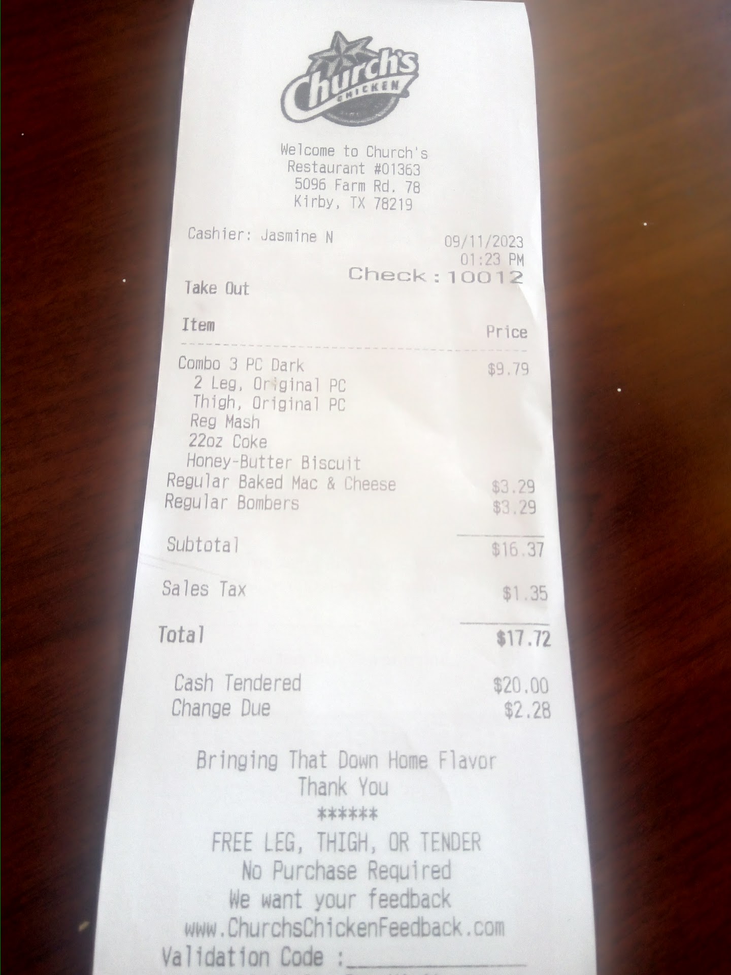 Ā Ā Ā Read moreOrdered online at 9:19pm. Arrived drive thru at 9:30pm. I was told we were working on your order, please. pull forward and park in front. Meanwhile, 5 vehicles came after me , and I received a minimum of 3 boxes of chicken. The dining is closed. I knock on the door at 9:45 pm, throw my hands up in the air, and shout where's my order is? I received a "I minute hand gesture." A person came out at 9:54 pm with my order, 2 chicken sandwiches, and a tender wrap; the 2 piece chicken meal was missing. The sides were there but no chicken! The explanation was, "we ran out of chicken. I gave you an extra Mac & cheese. " I'm upset. "How is it I witnessed you box up a minium of 15 boxes for people after me, and you couldn't fill a simple 2 piece meal?" I left emailed their corporate office, July 2 2024, and have not received a...