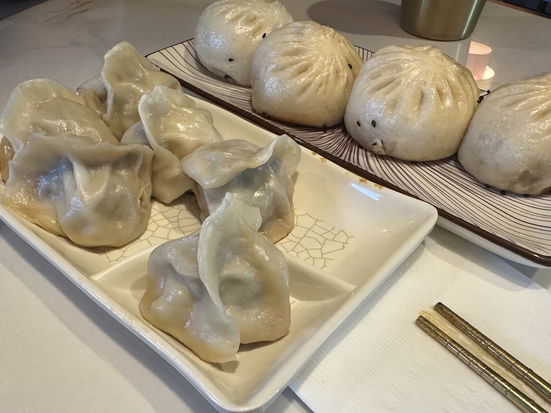 Atmosphere: feels like a dumpling house like Dough Zone. Semi loud music playing but conversation across the table is still audible.