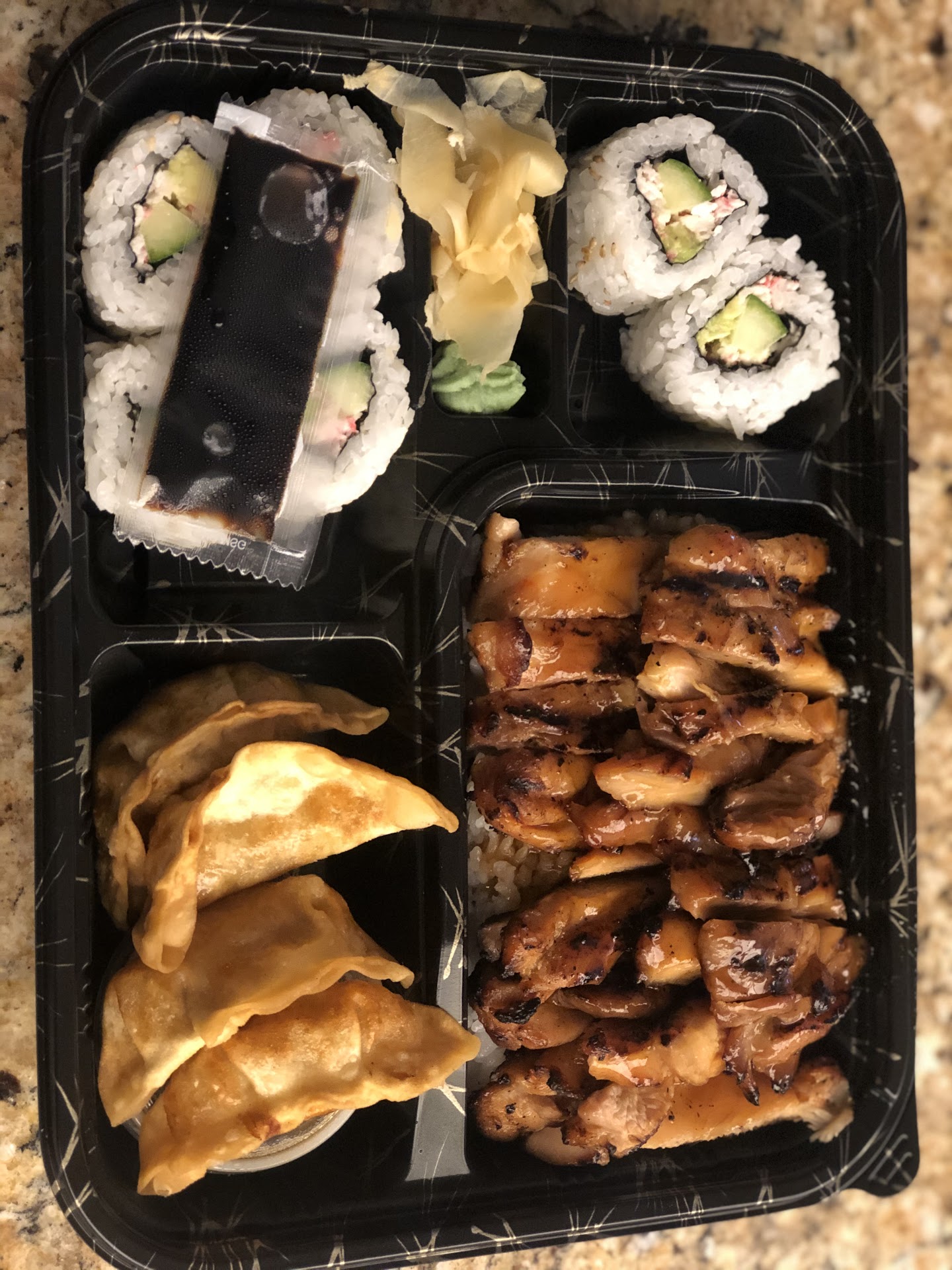 I’m rating this 5 stars based on the teriyaki and California roll, the place itself is pretty small and I wouldn’t expect much people on dine in but that could be changed by some new paint, new floors and new tables / chairs this place could be popping. The kalbi short ribs look super good but haven’t tried them...