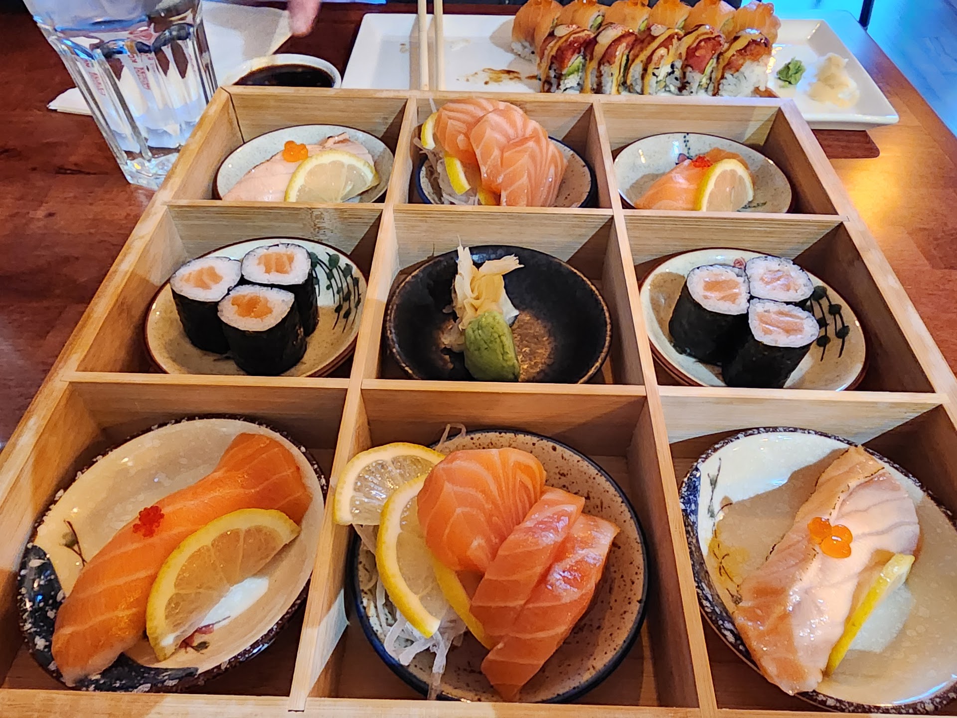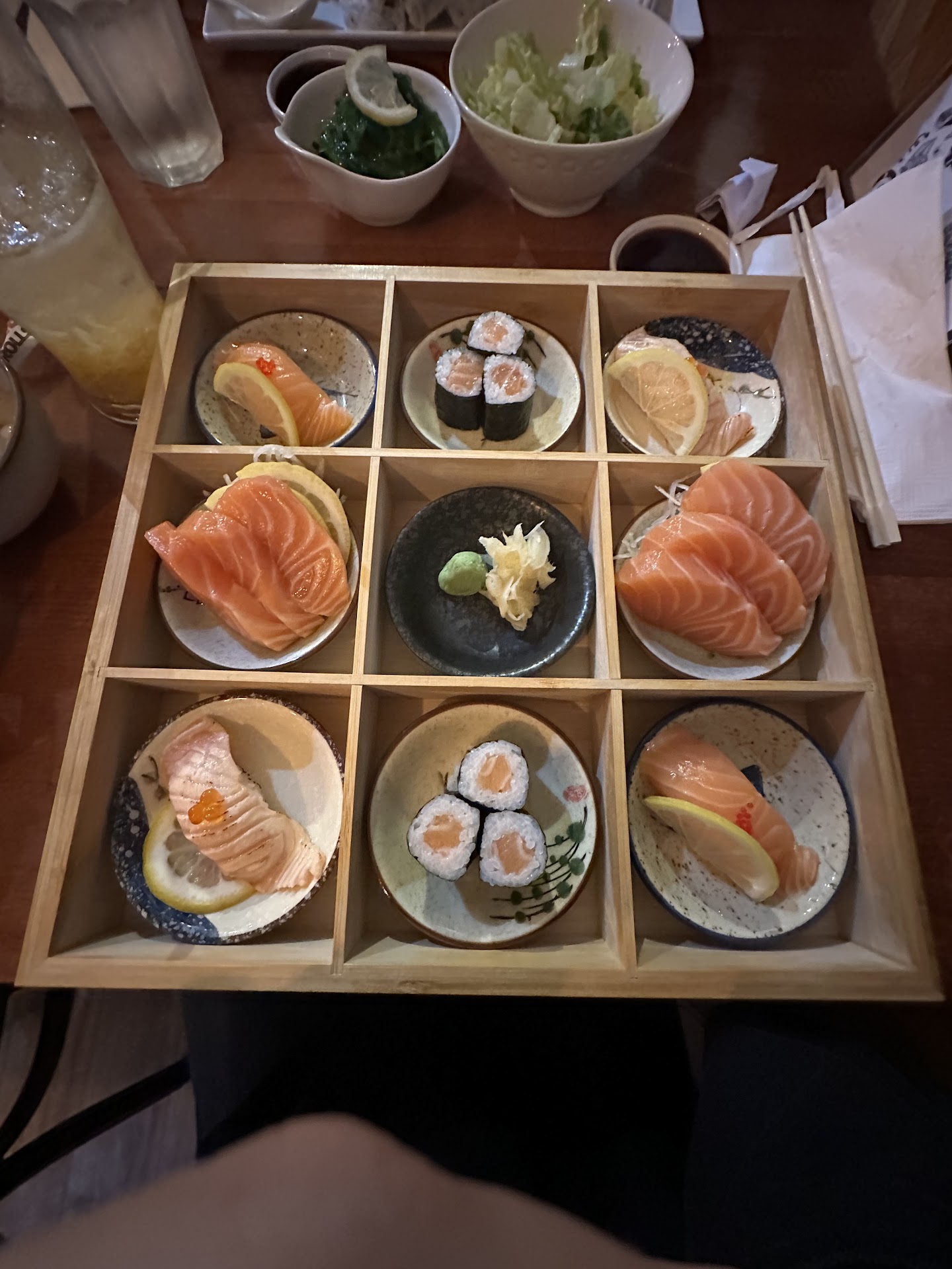Read moreOrdered Salmon box and it was so cute how it was displayed and for the price it was pretty good. It came with a bowl of miso soup and salad. We asked if we ordered online for pick-up if the soup/salad sides will come with it, and they confirmed they do.