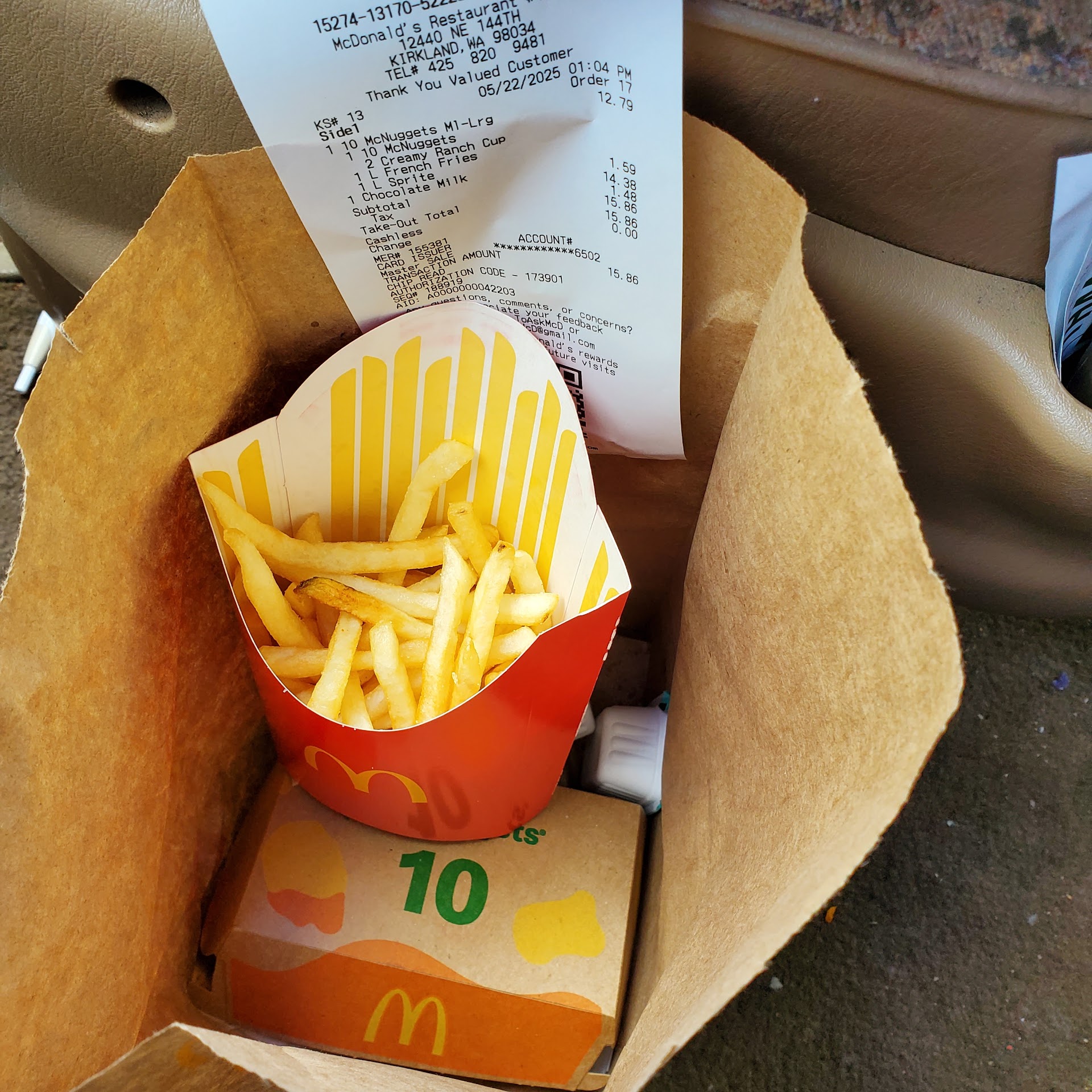 Read moreTerrible service, staff were rude . I suggest going to the one in Woodinville. Girl working the window handling food wiped her nose with the back of her hand and didn't stop to wash her hands . Was told my food would take 3 minutes, nobody in line behind , waited 5 minutes, then somebody was behind me now they want me to pull around and park because my food was not ready so when I asked how much longer she said 1 minute, so I said I will just wait right here , so she went to get a manager, this kid comes to the window to say that if you are in the drive through and your order is going to take 15 seconds or longer you have to park and wait for them to bring it out to you !!!!! 15 seconds are you kidding me! !!!!! Then he says that if you don't move out of the drive through they will call the cops !!!!! Really. Never heard of that before. .... the problem with parking and waiting , is that they forget about you and start waiting on other customers., I have had to go in and get my stuff , when they were supposed to bring it to my car and they forgot about and let it sit on the counter. No other fast food drive through I have ever been to has asked me to park and wait for my order . It's a drive through for a reason to DRIVE THROUGH AND GET...