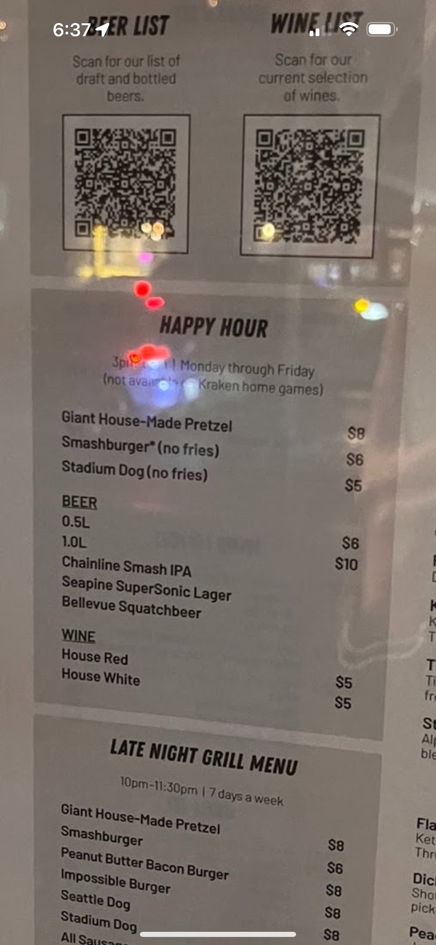 Cons: -Photos on Google show there’s happy hour (see screenshot), however, during our first visit the waiter said there isn’t happy hour. -No employees stated they are in a soft launch, which is important for customers to know beforehand. -As others have noted, the music is loud and clubby. -The food menu is average and there are small portions for the price. -Mac n Cheese was a huge disappointment. It was dry, mainly noodles and bread crumbs, and lacked flavor. -The back area next to the windows feels disjointed from the main area by the kitchen and bar. -Beer menu does not include the prices of beer. -The menu doesn’t explain what the tiered prices are for both burger options ($14 - 1 patty, $20 - 2 patties, etc.). We would not have known this if the waiter didn’t ask if we wanted a second patty on our burgers. Even after the waiter asked, they did not explain the tiered pricing.