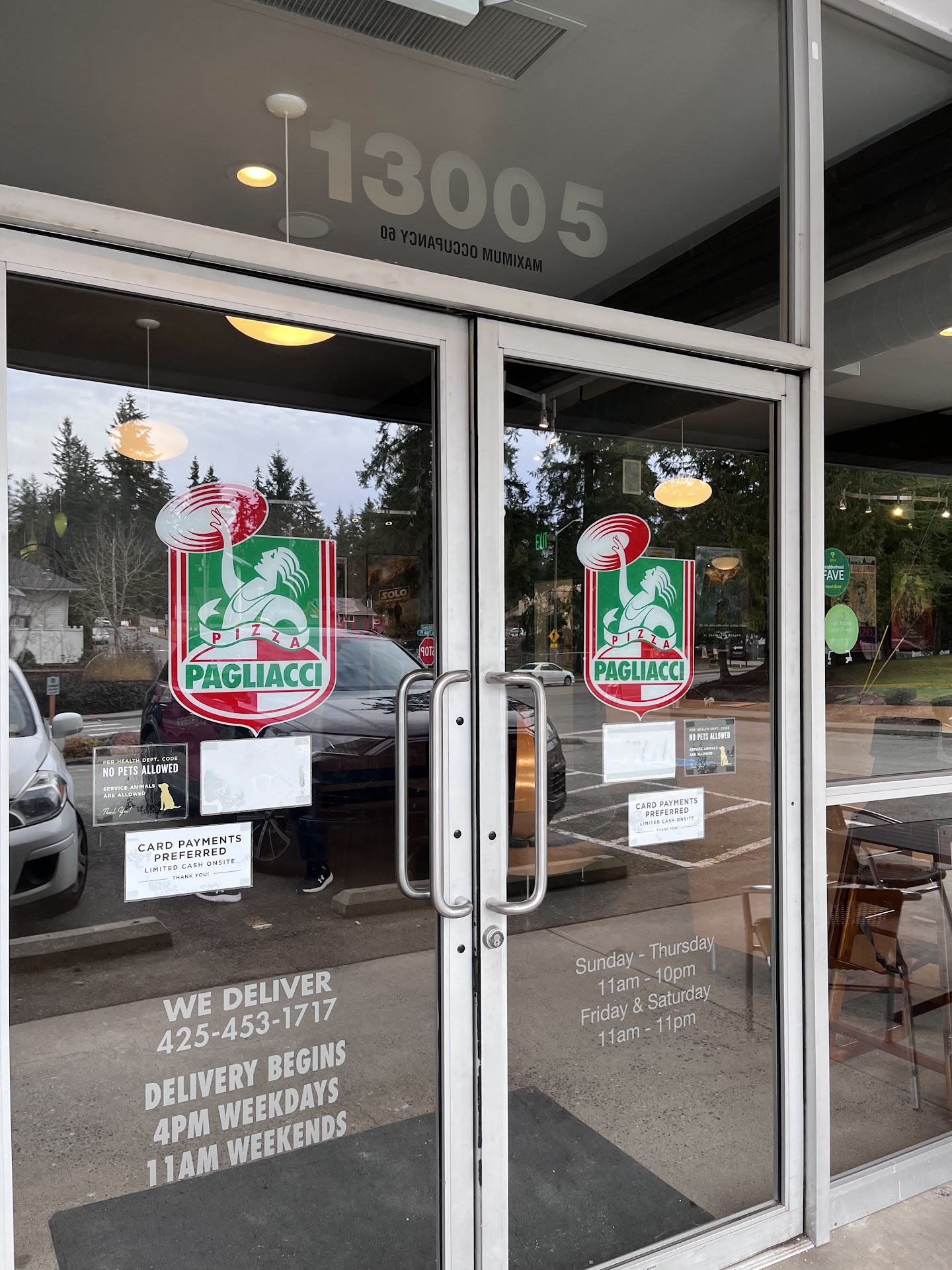 When ordering by phone: pagliacci uses a stupid phone service company because they are too lazy to take orders at the pizzeria! The phone service company says pagliacci requires credit card payment over the phone to order pizza. THAT IS STUPID and a waist of time to give some random company your credit card info..makes no sense at all. They ask for your full name, address, and credit info. Then they want to up sell you stupid menu items..waist of time.