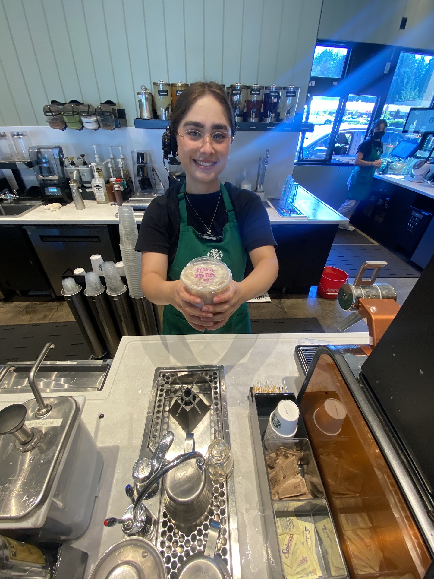 First of all... my drink was amazing as always. I went through the drive-thru and while I was waiting at the window being helped by Makayla I think, I noticed one employee being a little rude to a COUPLE employees :( I believe her name tag said MacKenna? or something like that. This is disheartening to see, what I assume to be, a lead...Glad I didn't sit down inside because McKenna was QUITE tense and that would not have been fun to just even sit around that vibe...for any customer I imagine. hopefully Starbucks can address this because she was not creating an environment for customers like me. I'm sure she's just stressed but customers can see that...