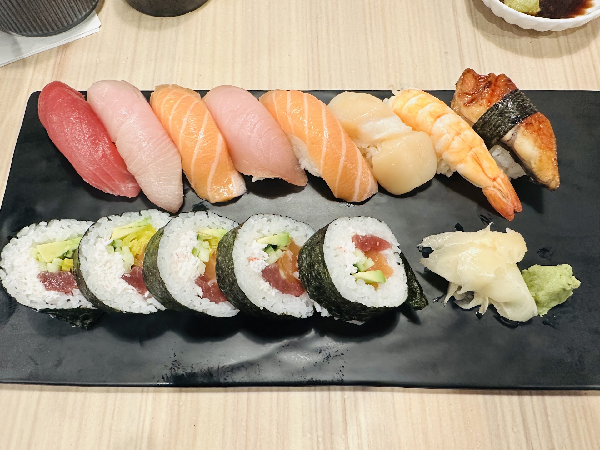 The fish slices are thick and fresh. Generous portions served. Creativity and taste balance in rolls. I will definitely come back, try different rolls, and update.