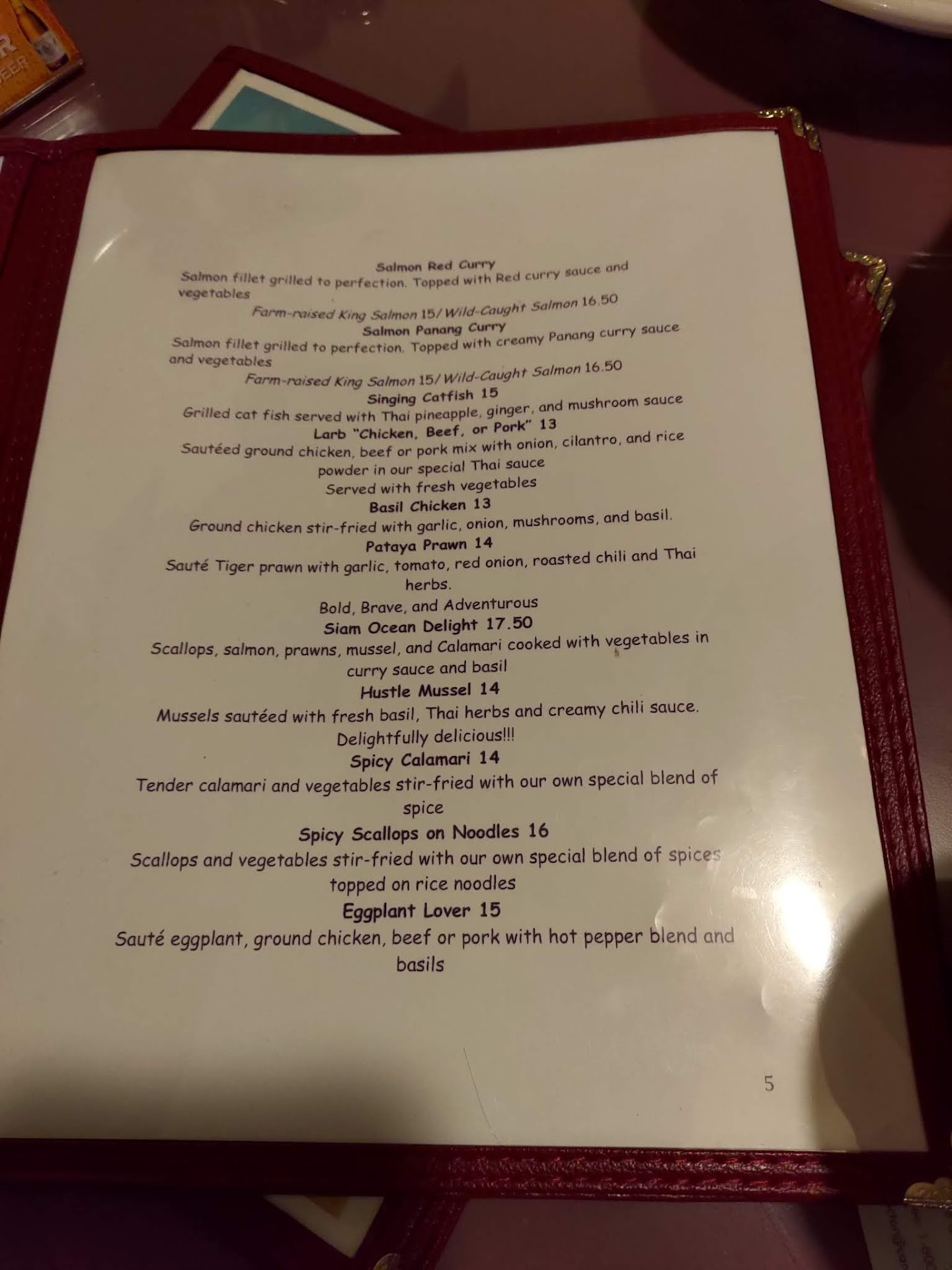 Read moreEither we came on the wrong night, or some of the other reviewers never had good Thai food. Sorry. This was a very disappointing experience. I always try to write about the positives of an experience, but the best I can say is it's a clean and quiet restaurant - because there was no one there. Even the server kept disappearing for long periods of time (but when she came, she was on the phone most of the time - yes, having a long conversation while serving out food). We had two dishes: Bangkok Chowder (described as "Hearty Meat, Vegetables, and egg flour Soup with Cilantro"). I thought it was a typo and should be "egg flower soup", but no.. it was a bland (yet salty) chicken broth, heavily thickened with flour (the main ingredient), with shaves of boiled chicken, about a dozen hair thin slices of carrot (how did they cut it this thin? couldn't even taste it!) and two (2) cilantro leaves. There may have been some egg-whites mixed with the flour - I couldn't tell. My grandmother's Polish chicken broth (before adding vegetables and Sleazeballs) had WAY more flavor than this. Panang Curry (described as "Very creamy and spicy dish includes your choice of meat, coconut milk, bell peppers, basil, and lime leaves"). It was in fact a very watery and spicy liquid that contained very few pieces of meat and two (2) slices of red bell pepper - each less than 1/8th of...