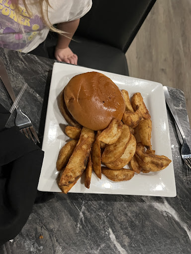 The kids hamburger is a smash burger so it's super thin and crispy. Unfortunately my kid did not like it. And the chicken is 2 large chicken tenders. They tasted pretty good and the steak fries were tender inside, crispy outside and seasoned really well.