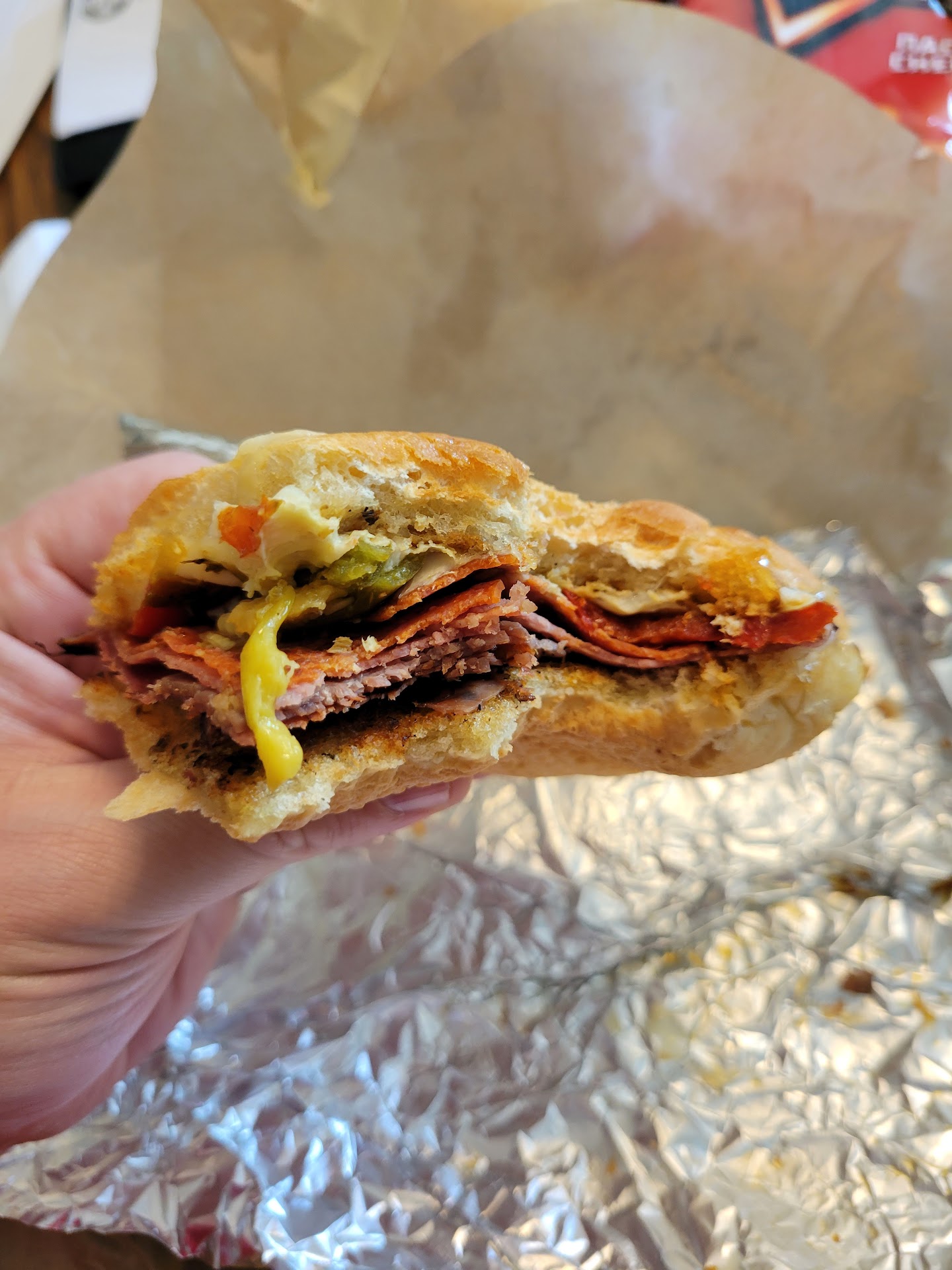 I've tried four different sandwiches from this place so far, each better than the others. But you know what I haven't tried? The Gyros. I just found out they're considered some of the best in town. See you guys soon, probably tonight! My wife will be tickled if I tell her I'm picking up a Kirkwood Deli Reuben for her for dinner. I'll be having the gyro. Seriously, this really is one of the best sandwich shops in town. Not just Kirkwood, but all of St. Louis. Also of note... I'm always impressed when I walk into a place and see teens who go a step above. This isn't "old guy millennial talk", because I was on the lazy end of the spectrum as a teen. What I mean is that there are a few places in town, like Taco Circus, and Gioia's Deli, to name a couple, where, even though the average age of the staff is less than 20, the service is exemplary. This is one of those places. And now that I know his name, I'll call him out by name -- Josh is a damn good sandwich crafter and a friendly dude. In a way, this is one of those places that not many know about and something inside you wants to keep it as a special secret. But that would be doing a disservice to the owners and to anyone who loves a great sandwich. Oh and by the way, get the Sink, but kick it up 20 notches and get it on garlic bread....