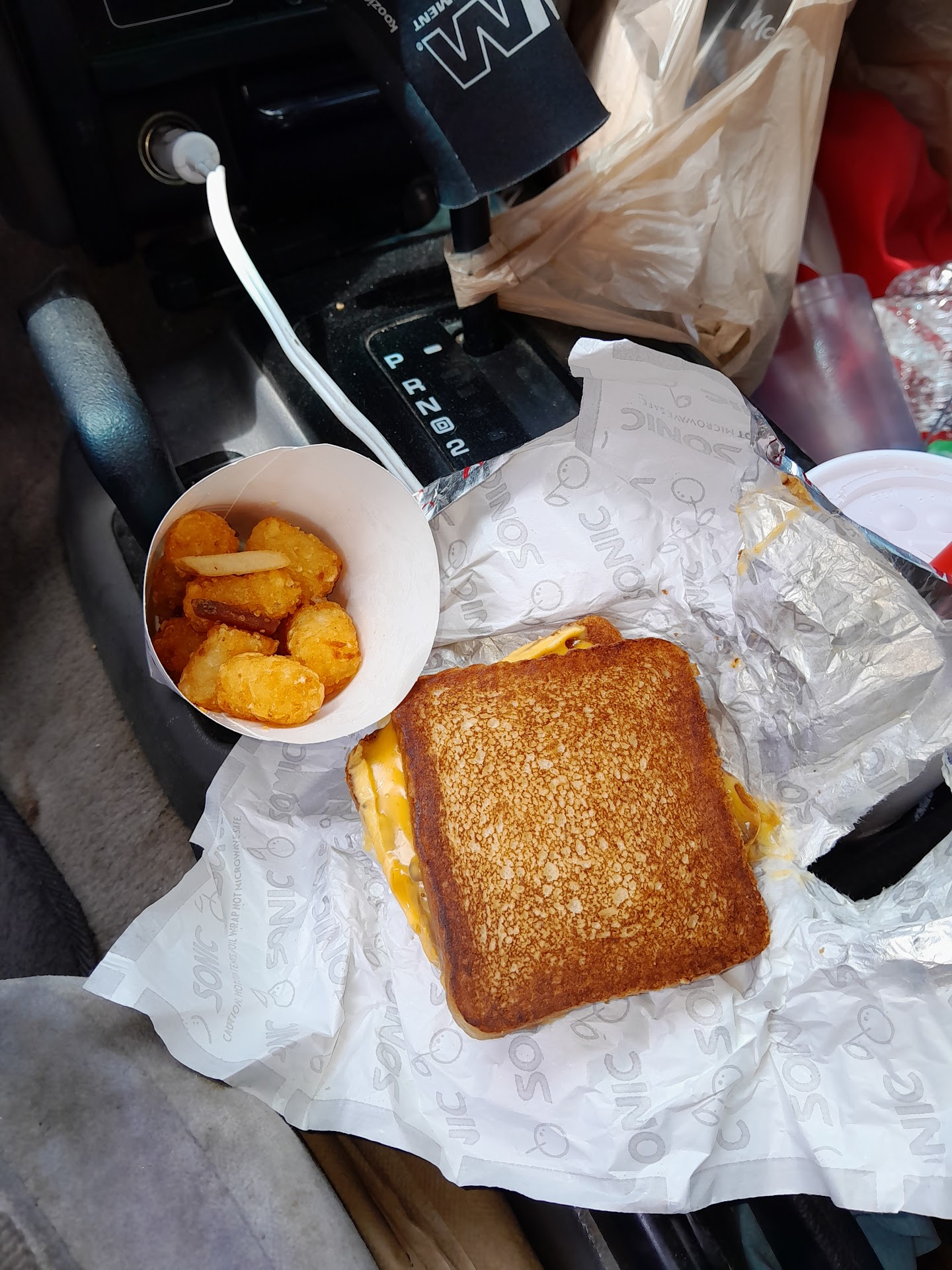 I didn't realize that this sonic didn't have an actual drive thru like the sonics I have been too. It was really hard to understand the man in the drive thru and I almost wanted to cancel my order and leave bc I felt so bad for making them come out in the rain, and I have a truck that is very hard to pull into the stalls,I have had issues with my own personal large truck and the sonic booths. I had my male partner hit the side menu with his truck before bc the truck was too big. I am on a business trip as well and my service dog in traing was in my truck. I was getting food for her as well. We sat out in the rain soaked from being out in the rain all night. I ordered 2 combos ,a burrito, the toast grilled sandwich and French toast sticks. I recieved no napkins, no maple syrup , but a ton of ketchup. I let my dog Luna 🐕 have the burrito and sandwich, both were covered in cheese and I just wanted the meat off of it but I also have a thing about cheese. I dont like it all over my meat and bread. I didn't ask for no cheese bc again I couldn't understand the man very good and i felt bad that i didnt do a good job ordering, and they wouldnt make iced coffee for me. And i wanted another drink option but felt inclined to keep it to myself so my dog and i could eat ,bc we were starving from not eating much on our trip from over an hour from st louis ,and our walk we had in the cemetery this morning and from shopping @dollartree. So I only came here bc raising canes wasn't open yet it was still morning and they dont open until later. This has been the 1st time in probably 10 yrs that I have had fast food in kirkwood. I was really disappointed at the most populated and only actual drive thru place was a drive thru coffee place. When I saw the line for it ,I thought it was a bank and everyone was getting $ out. Then I just realized they are just getting coffee. In my opinion, in the morning people are already late or in a hurry as it is ,how do you not try and save money and convince and make your coffee @home. The outside trash cans were also full of trash, and things that are not even sonic trash. I picked up some trash and took 2 of the card board drink carrier that looked unused ,they can be reused or recycle ♻️. I picked up straws that were right next to the drive thru area , but I was appaled at all the cigarette buts on the ground. It is 2025 you dont know how to properly dispose of a cigarette but by now. With all the people...
