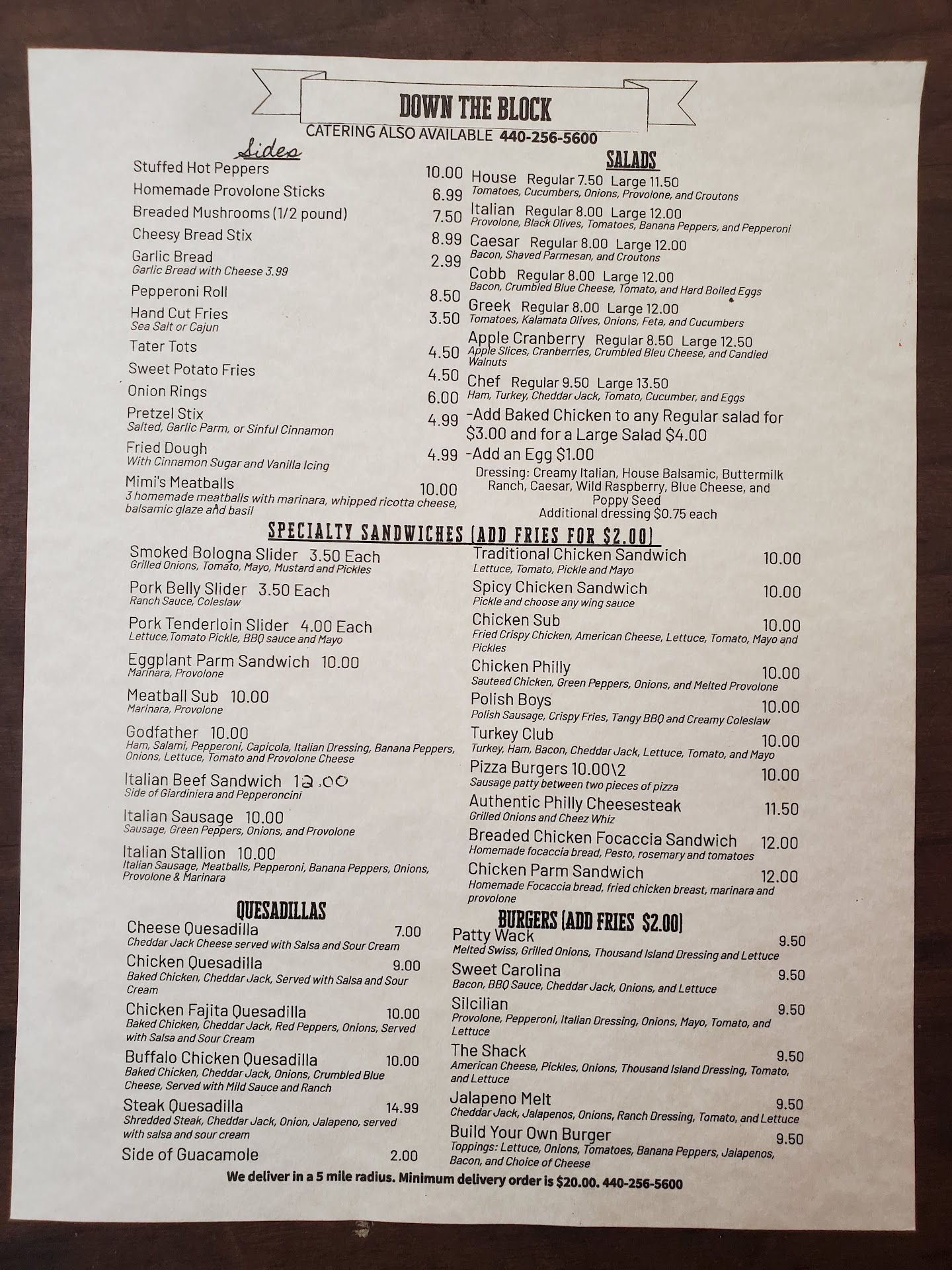What an amazing menu. We asked the super sweet lady what she recommended. Our "snack" turned in to a Philly cheesesteak, "Mimi's meatballs," and some homemade provolone sticks. It was absolutely AHHHHMAZING!!! The meatballs are absolutely to die for!! 10/10 definitely recommend.