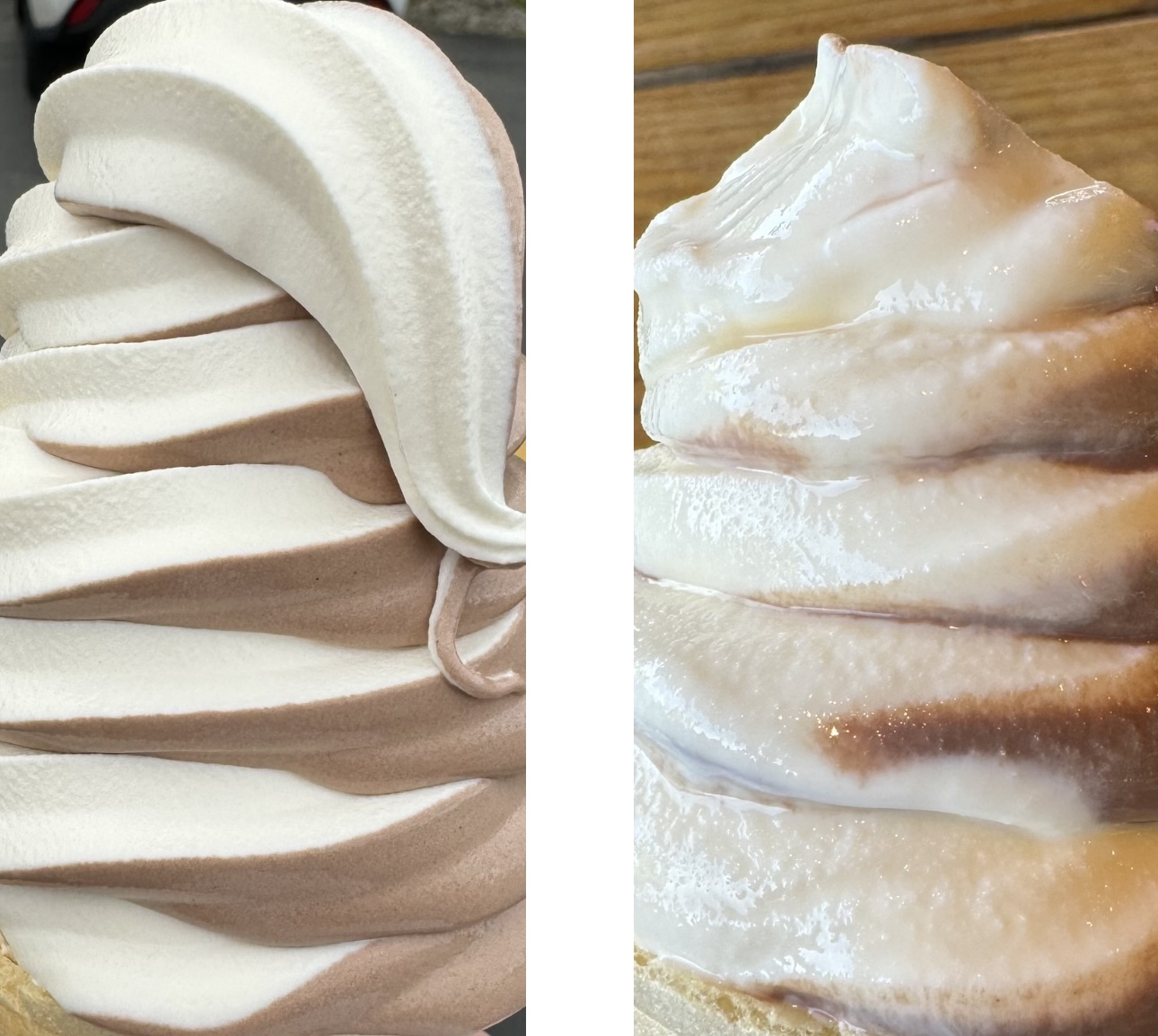 I choose a large twist cone. Their large is much larger than DQ's large cone. On a sunny 80° day the softserve cone was a treat. The softserve was good but not exceptional. The price...