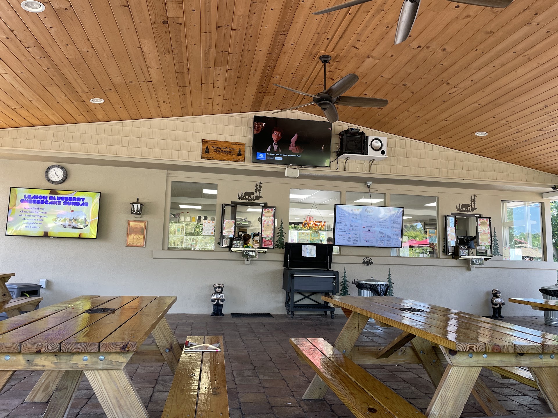 This is our first and most likely last time going. We wanted to try something new instead of Angelo’s or King Kone. The girl taking our order was very nice and tried so hard to be patient, but several flavors we asked for were out. Then after waiting awhile for them to put it together the portions were so small. We all ordered medium and it was one scoop of that. I even asked “is this a medium?” Just in case and they said yes. We then sat down under the awning which was really nice, but the ice cream was average. Could it be that all the good flavors were gone? Either way we over paid way too much for way too little ice cream. I rather go back to Angelo’s or King Kone.