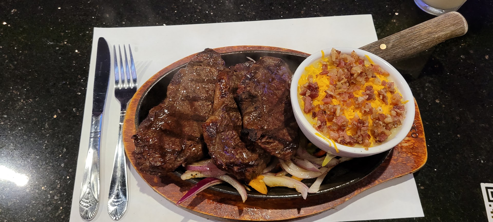 We had a mix of steaks: ribeye, NY strip, sirloin and the jumbo shrimp. The seasoning and the temperatures were perfect. From well done to medium rare, all were happy.