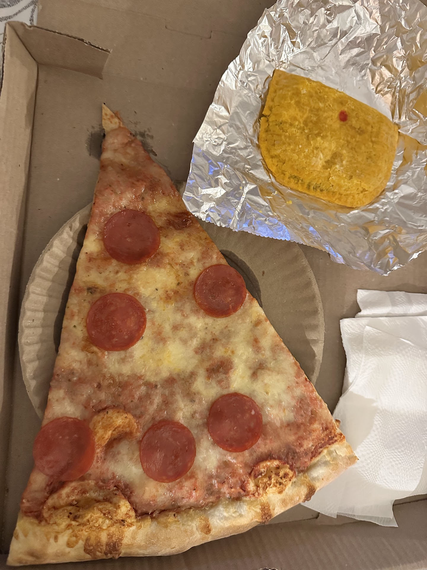 The pizza was great. Honestly the best NY style I've had in a while. Beats everyone around them with taste and price. The only better New York style I've had is in downtown (but even some of those have gone down in quality).