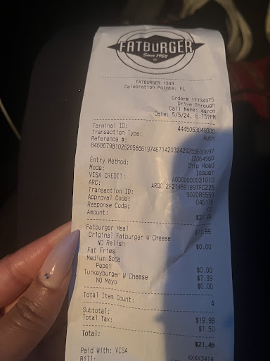 Read moreWe ordered an original burger meal and 1 turkey burger. The meal we received was definitely not what we ordered. We received 2 beef burgers and the toppings were wrong. My brother opted to just eat his but I took my burger back inside to request a re-make since it had relish on it (i hate relish). The entire customer service experience I received was negative. The cashier tried to argue with me initially and say my order was correct, after she pulled up my receipt and I pointed all the issues again she said she’d get the order remade. I kindly requested that just my burger get remade and not to worry about the fries. As this whole conversation is happening, the manager is standing in the back watching me. The cashier gave the bag of food back to the manager who then walked over to me asking if I was the drive through order that needed fixing. He then proceeded to question me and make me feel like I was asking for free food. At one point he asked where the burger was and where was my brothers- which is wild because the cashier still had the bag with my burger in it and he clearly didn’t even try to look in it. He finally agreed to remake my burger, I received it and left. The burger I received was ok but I definitely won’t be coming back. I’ll just stick to the Cali...