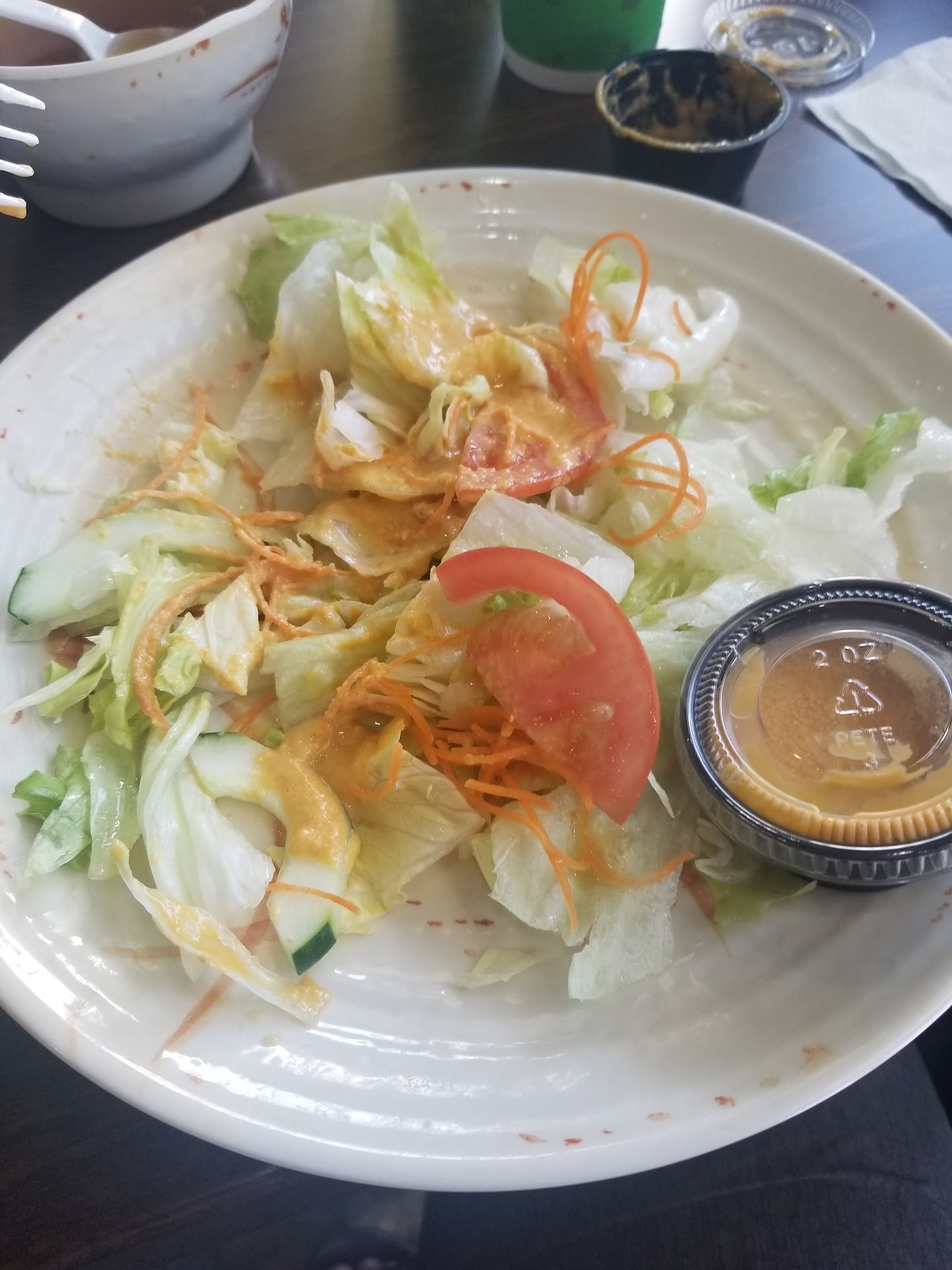 I came at lunch so I was curious to try one of their $7.25 Hibachi lunch specials. That price includes a drink and is slightly more than most Chinese take out lunch specials but after tasting it, it is definitely worth it! I ordered the Hibachi steak which came on a real plate full of fresh plain fried rice, a very good assortment of Hibachi vegetables and 10 one inch chunks of steak with a side container of the ever so popular yellow yum-yum/seafood sauce.