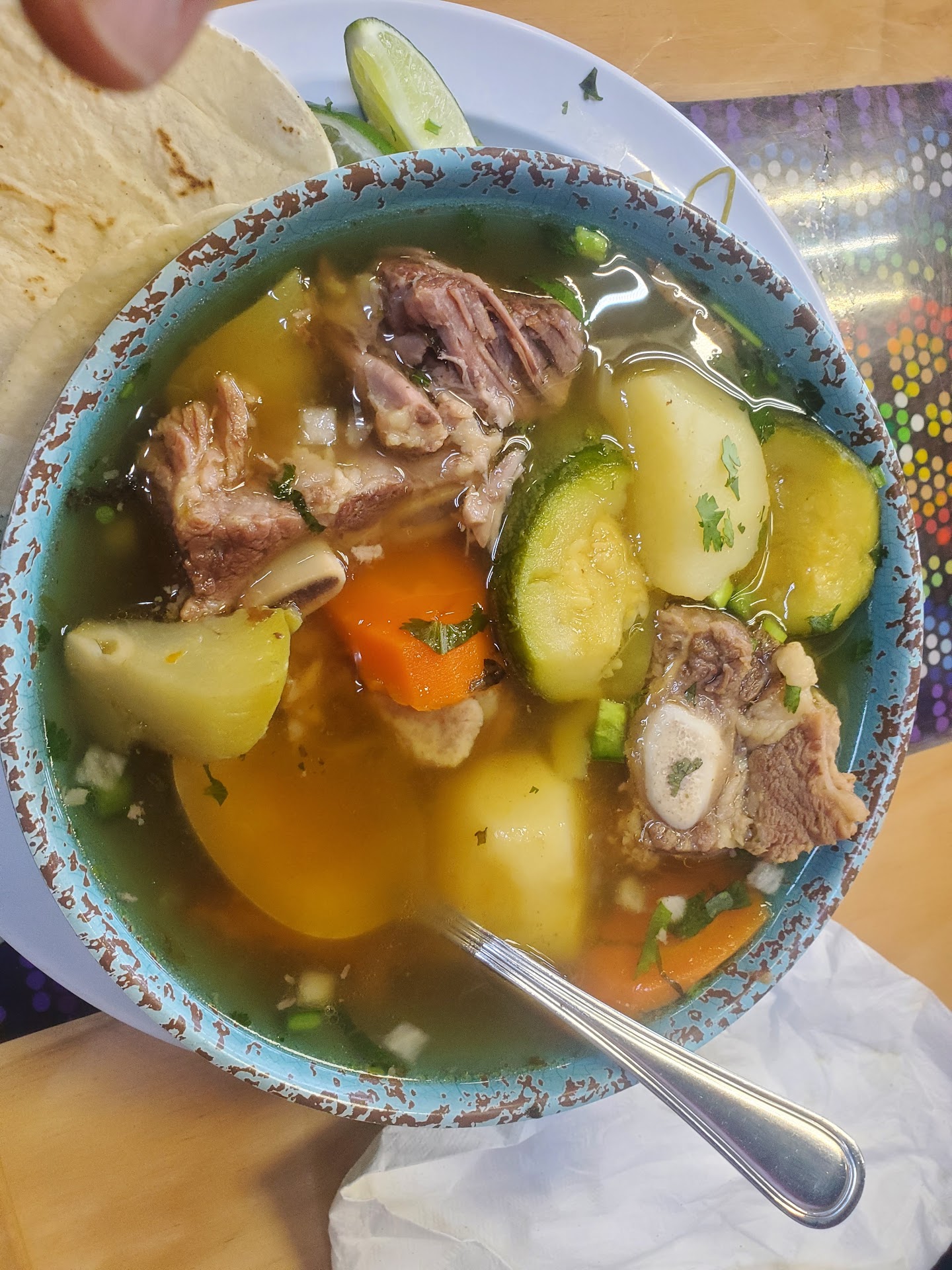 I've been here before for lunch and dinner and it's always good. Last time I was here, I noticed that they have breakfast items on the menu. Today was the day!!!! Man, it did not disappoint. My pictures include Caldo de Res and Huevos Rancheros. I mean look at the pics. That tasted better than it looks. Let me tell you a little secret about Mexican Restaurants. If you arrive and the customer base is 80% Mexican, you are in the right place. Nevermind, that it was 9:30am and the place was packed with maybe 2 to 3 tables available. Service is fast and the food comes out pretty quick as well. What I noticed today is these servers all work together as a team, they help each other out, run each others food and that really helps all of them out. Of course I'll be back. Definitely for breakfast again. Need to try some more of the breakfast options. ...