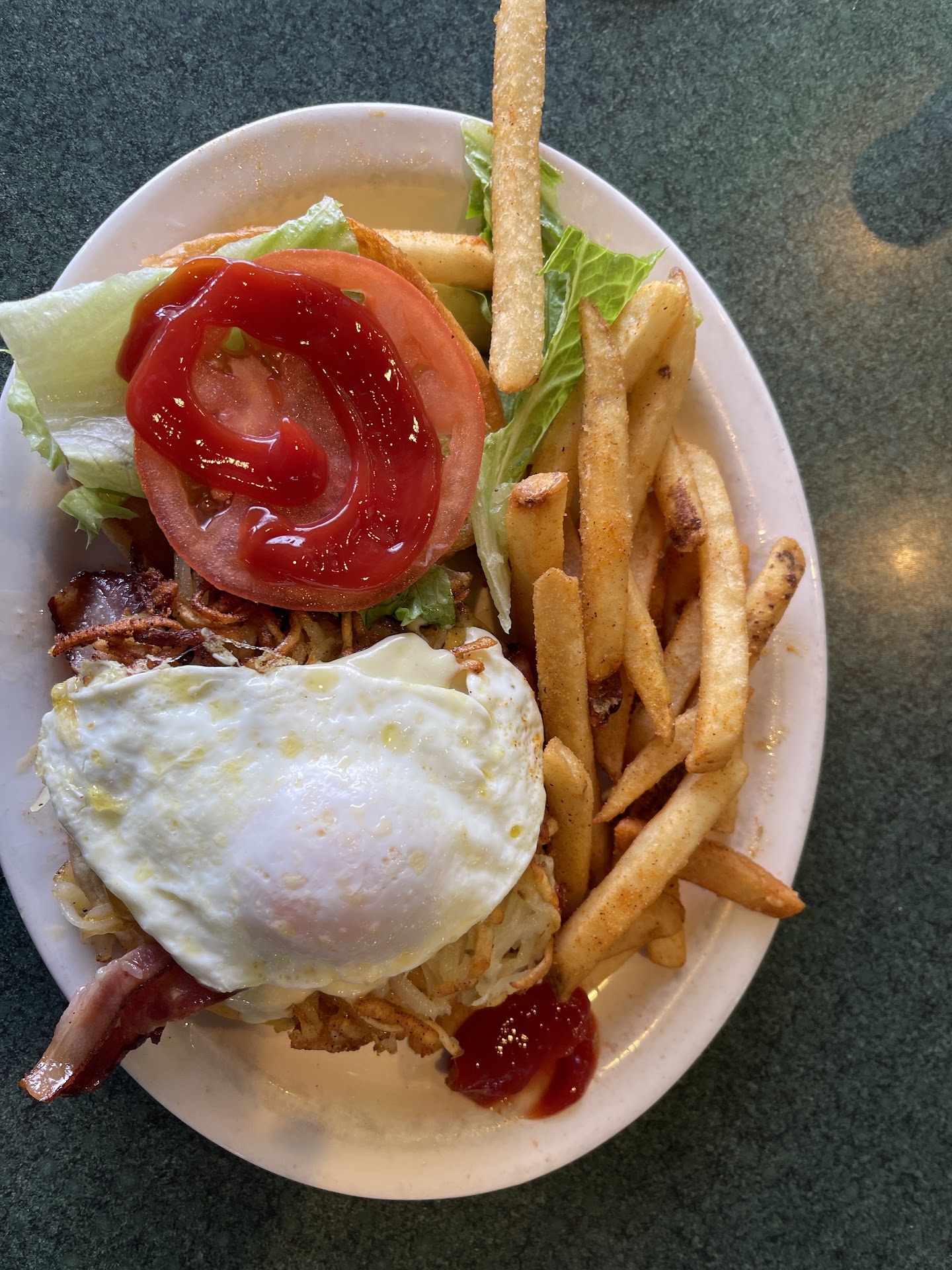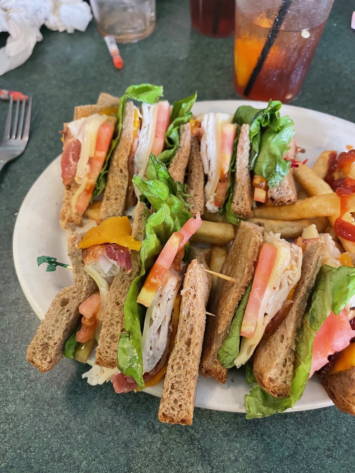 The rest of our meals arrived one at a time at differing times. I asked the server to have the manager stop by the table. Several minutes later the Manager arrived. This person was nowhere in the front of the house during the hour and a half we were in the restaurant. She said the server asked her to come to the table. I expressed my dissatisfaction for the time it took to serve us and then showed her the butchered Club Sandwich that was served to me. She acknowledged the sandwich and said they actually made it with white bread initially and then had to make it with whole wheat bread. However, based on visual inspection, they attempted to make the sandwich with the same ingredients that were already cut in triangles during the first attempt. Who does that?
