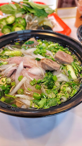 Food: Pho - very flavorful with all of the expected aromatics in the broth. You'd definitely not need to add hoisin or Sriracha. Noodles and meat are average quantity. I will say that the meatballs tasted very dry and not fresh. You get all the expected veggies; bean sprouts, Thai basil, jalapenos and lime. Portion size is average and what you'd expect.