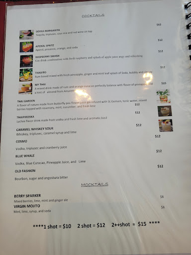 Read moreCame here with my party the weekend before Christmas and it was packed. We didn’t have a reservation and when we walked in we checked in to be seated and the server at the front immediately said no because we didn’t have a reservation. Then he quickly changed his mind and said okay maybe another 15-20 minutes. My husband had to go and ask one of the servers if we could put our name on the waitlist. We proceeded to wait which was totally fine, after about 10 minutes I needed to use the restroom and I went to the server we initially spoke with to ask him where it was. He barely even looked at me and said that the bathroom is for customers and I could use the ones outside and around the corner and he walked away before I could even say that myself and my party was waiting to be seated. So, I asked the other server and she proceeded to try to tell me the same thing he did except I told her that me and my party had been waiting. She finally directed me to the restroom but honestly I was shocked and felt like it was so rude. Once they sat us everything was fine for the most part, the service wasn’t exceptional or anything and we didn’t expect it to be since they were so overwhelmed and seemed to be barely keeping up with a full house. Once we placed our order it took so long for the food to come out. At this point the restaurant wasn’t as packed and yet it was still taking an abnormal amount of time. Our server went to check on the food and said it would be out in a moment. They proceeded to bring out one dish at a time versus the whole table at the same time. Some of my party ordered soup and they brought it out after other dishes when it would have been easy to bring it out before the rest of the meal. Our table ordered two chicken dishes and the lack of chicken in both those dishes was appalling. The dishes were predominantly pepper and onion, so you feel like you’re paying $20 for just stir fried pepper and onion. Someone at my table ordered Tom Kha and most of the bowl was just filled with onion and then three shrimp. Beyond that they have a mandatory 20% gratuity added to the bill for parties that didn’t make a reservation and that are over 5 which feels a little ridiculous. Some of the dishes were too sweet while others were way too salty. Overall did not have a super positive experience here between the service...