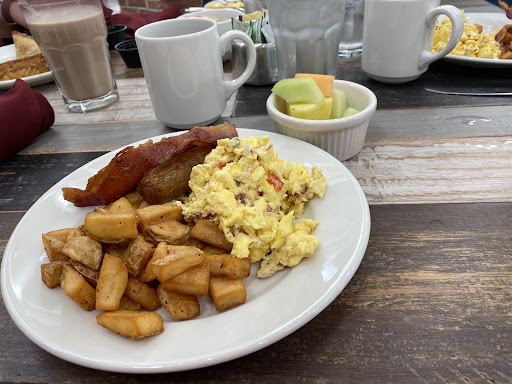The wait staff was very friendly and helpful and the spot was wide open for us. I wasn't expecting a buffet, what with the normal COVID restrictions and not being available in most places, but here it was. It offered bacon, sausage, scrambled eggs, potatoes, fresh fruit and french toast. Of course, coffee was on offer as well.