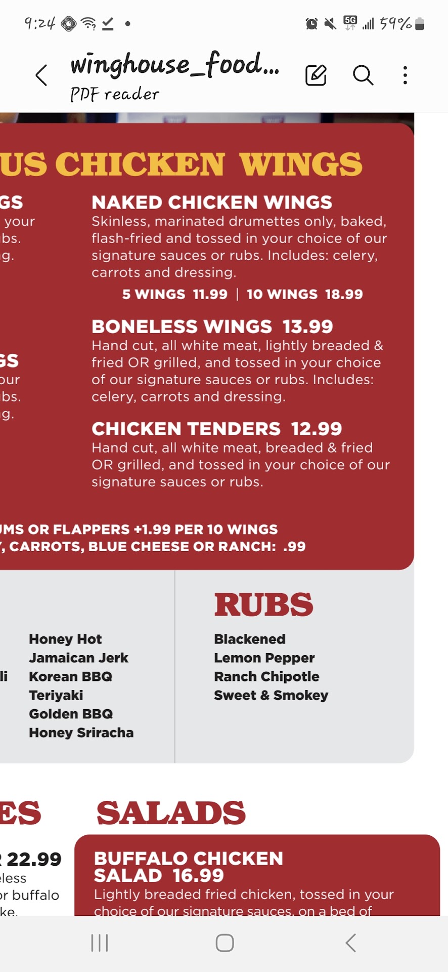 Read moreWent to Wings House to watch the UFC fights. Hostess barely got my name, no way to track us down. I watched her roam around searching for people waiting. During our wait to get seated, we grabbed drinks from the bar. After we got seated, no server came to our table at all. After 30 minutes we finally went to the hostess to ask for a server. The server came by, got our order. Then never returned until she showed up to tell us she was leaving and wanted to close us out. She then hinted that we should leave because other people were waiting, but we were there to watch the fights. We never got another server. At one point a bus boy cleared our table and no server ever came by. Finally after an hour I went back to the bar to get another drink. The bartender failed to charge me for the drink.