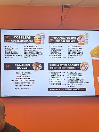 Read moreClean new restaurant. We tried the peach cobbler and cherry cobbler. It seems like they just crush up a cherry pie or a peach pie. Or maybe just mash up crust in hot fruit pie filling into a cup. The ice cream taste like your run of the mill vanilla that you would get from like a gallon tub at your local grocery. We paid almost $20 and this dessert run just didn’t seem worth it. The service was excellent though and I did see other things on the menu I would be interested in trying so I would go back just maybe not for the cobbler which was supposed to be the start...